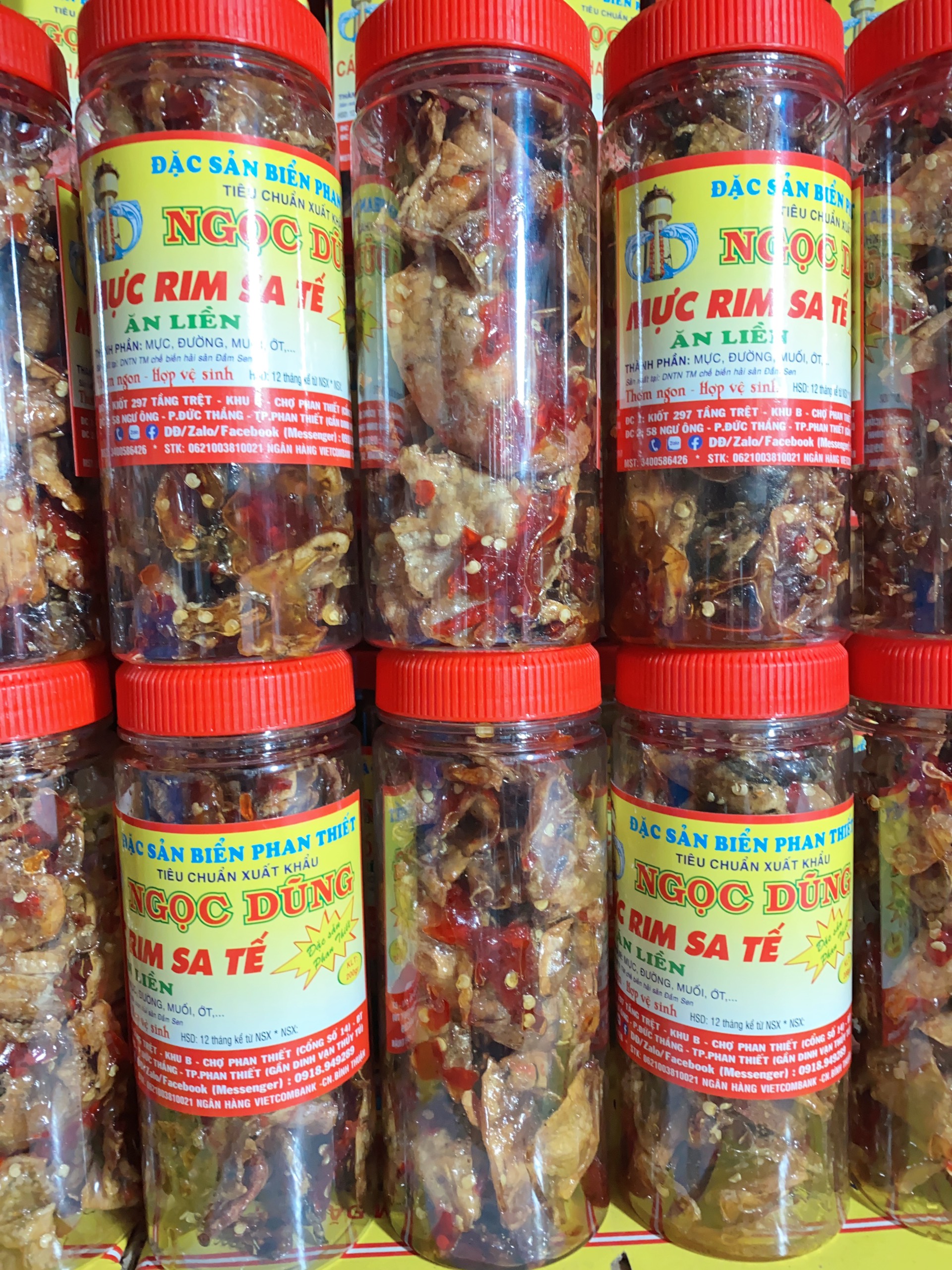 Mực rim sa tế ( ăn liền ) gói 50 gram là sản phẩm trải nghiệm được chế biến từ mực ống hay mực lá còn tươi xanh tại Cảng cá Phan Thiết tỉnh Bình Thuận là món ăn ngon của Shop Đặc Sản Biển Phan Thiết NGỌC DŨNG.