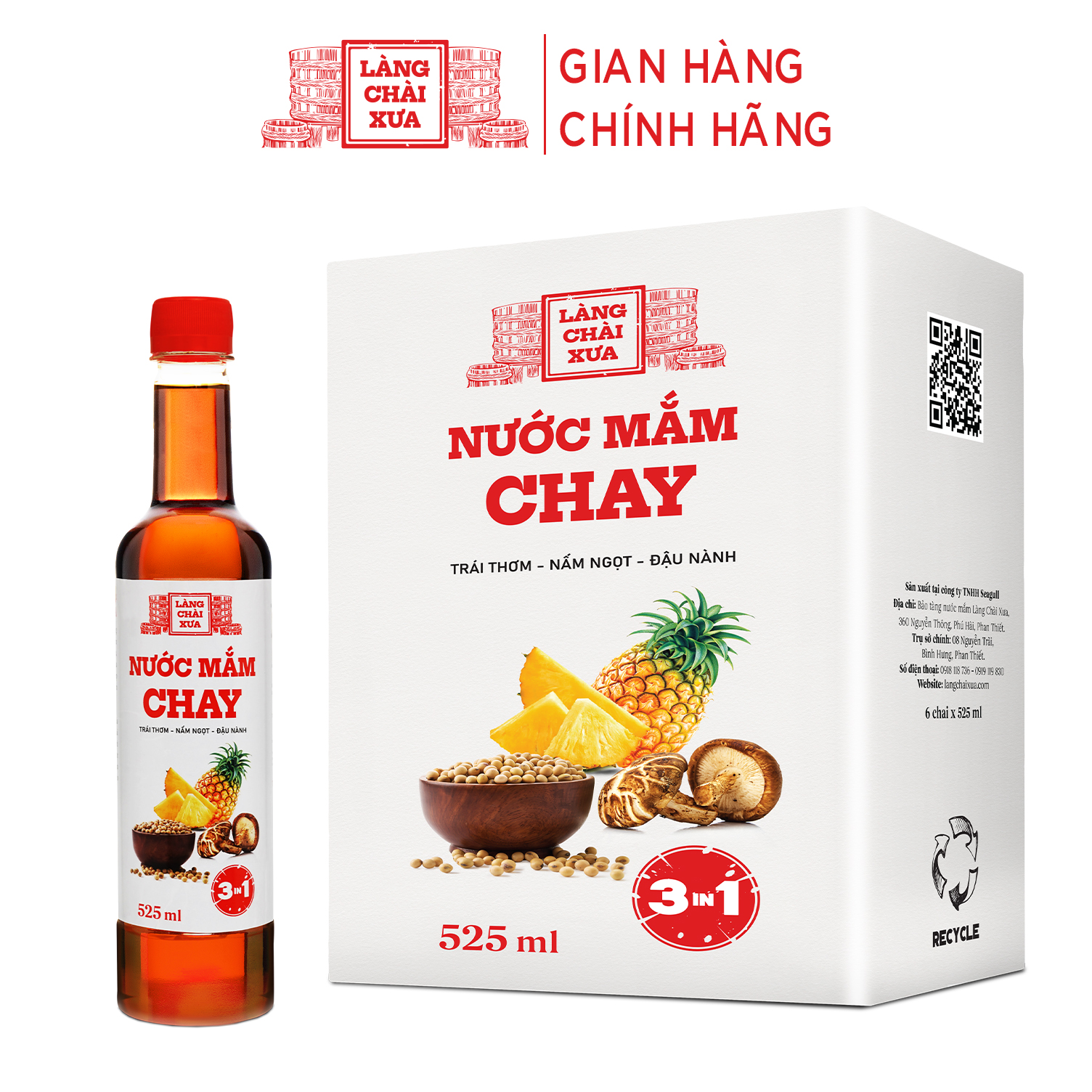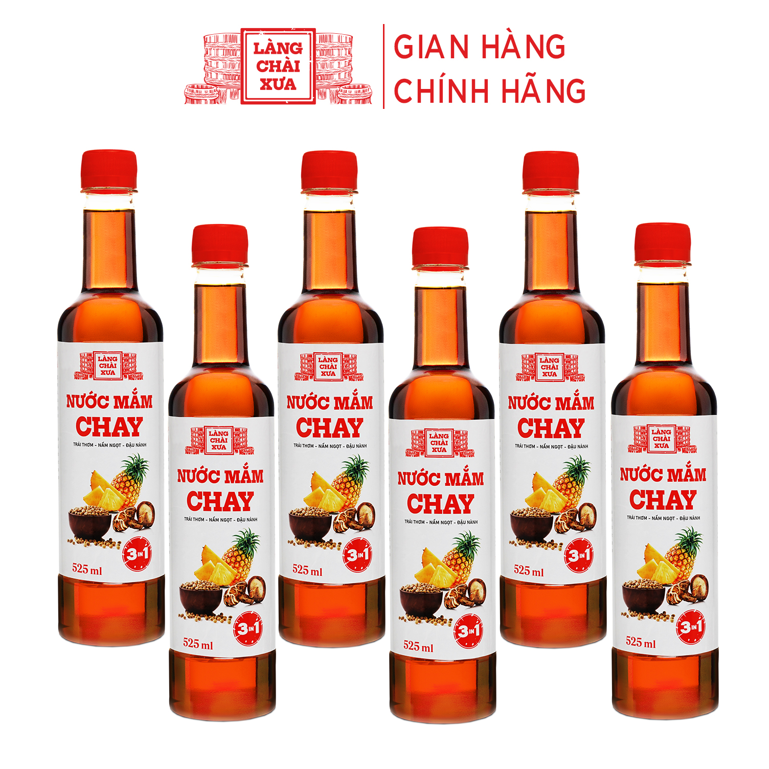Thùng 6 chai nước mắm CHAY 3 trong 1 Làng Chài Xưa 525ml trái thơm nấm ngọt đậu nành 300 năm