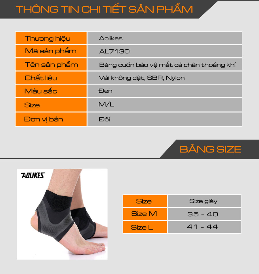 BĂNG QUẤN CỔ CHÂN AOLIKES AL7130 - bảo vệ - tránh trật sơ mi - chấn thương cổ chân