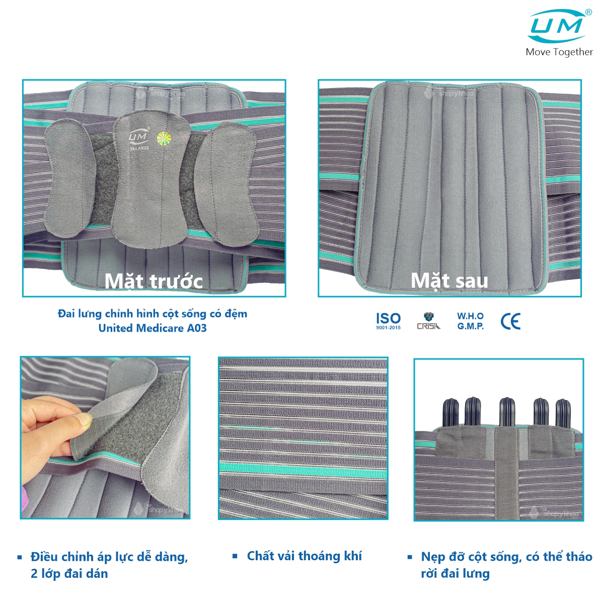 - Không ủi khô. THÔNG TIN THƯƠNG HIỆU United Medicare (UM) là nhà sản xuất hàng đầu các sản phẩm chỉnh hình và phục hồi chức năng trong khoảng thời gian 8 năm trở lại đây. Chúng tôi tự hào sở hữu nhà máy sản xuất hiện đại theo tiêu chuẩn ISO 9001:2015. Các đơn vị sản xuất của chúng tôi đã được thiết lập theo các thông số quốc tế và đáp ứng các tiêu chuẩn WHO-GMP. Tất cả sản phẩm đều được sản xuất theo tiêu chuẩn Châu Âu và có đánh dấu CE. Sản phẩm của UM hiện đang có mặt tại Vương quốc Anh, Hoa Kỳ, Canada, UAE, Kenya, Malaysia, Mauritus, Nepal, Châu Phi