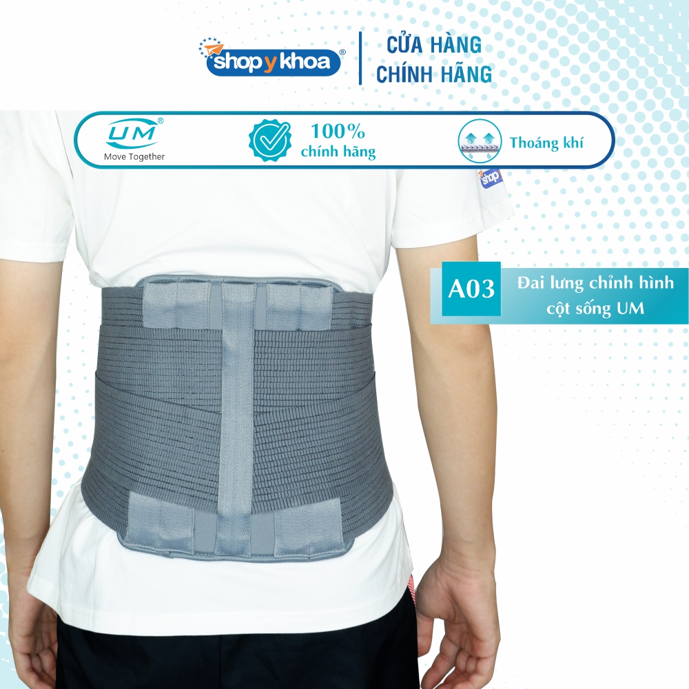 Đai lưng chỉnh hình cột sống UM (A03) có thiết kế hình dạng giải phẫu kèm thanh nẹp cao cấp, đảm bảo tư thế hoàn hảo và bất động hiệu quả. CHỈ ĐỊNH - Đau