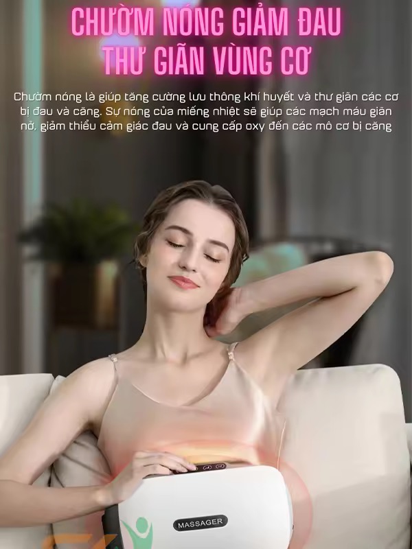 - Sản phẩm được sử dụng ở rất nhiều vị trí, vùng trên cơ thể như: bụng, lưng, vai, chân,... giúp hỗ trợ giảm đau mỏi, massage sâu kèm massage nhiệt mang lại cảm giác thoải mái, dễ chịu cho người dùng.