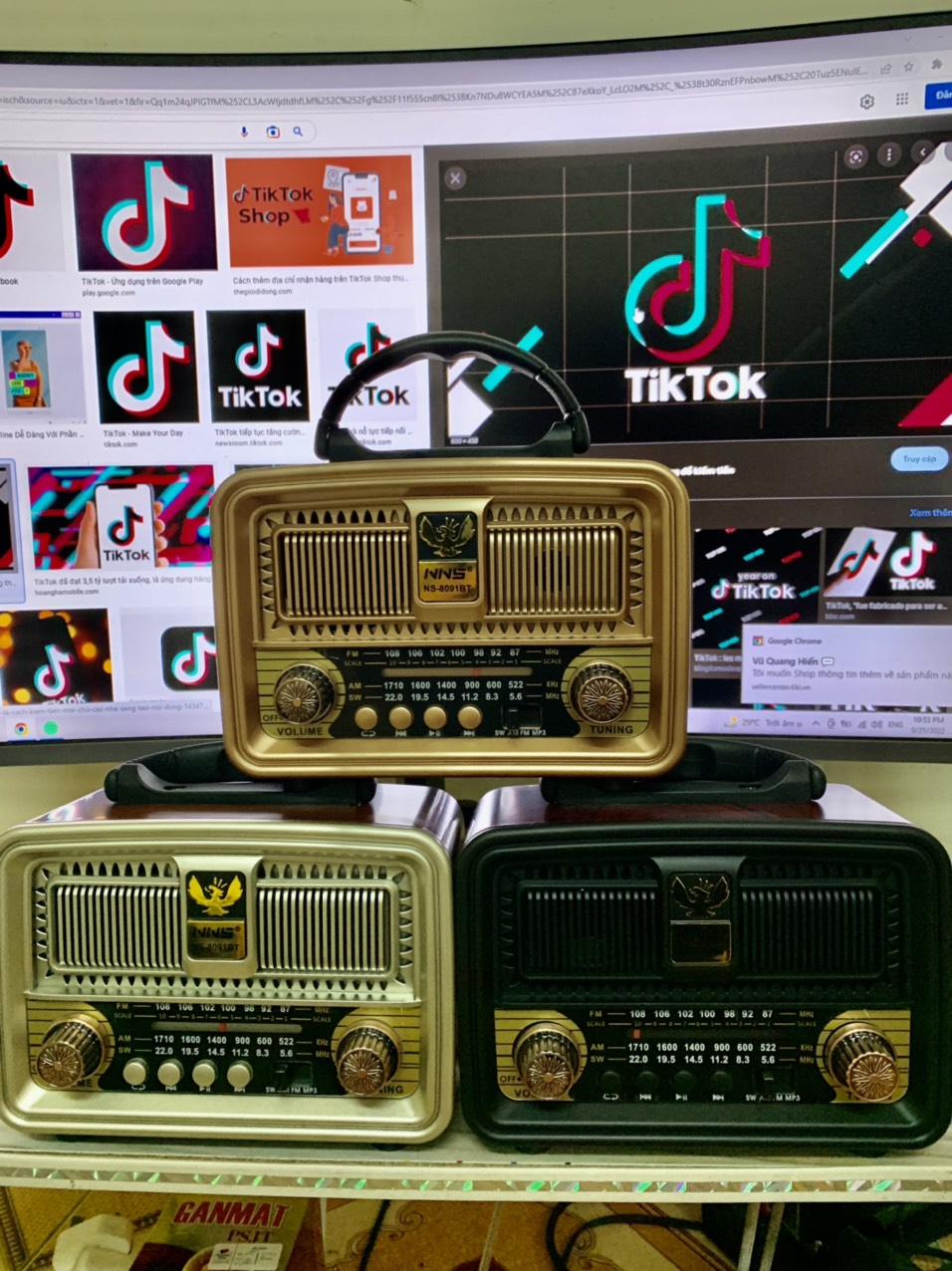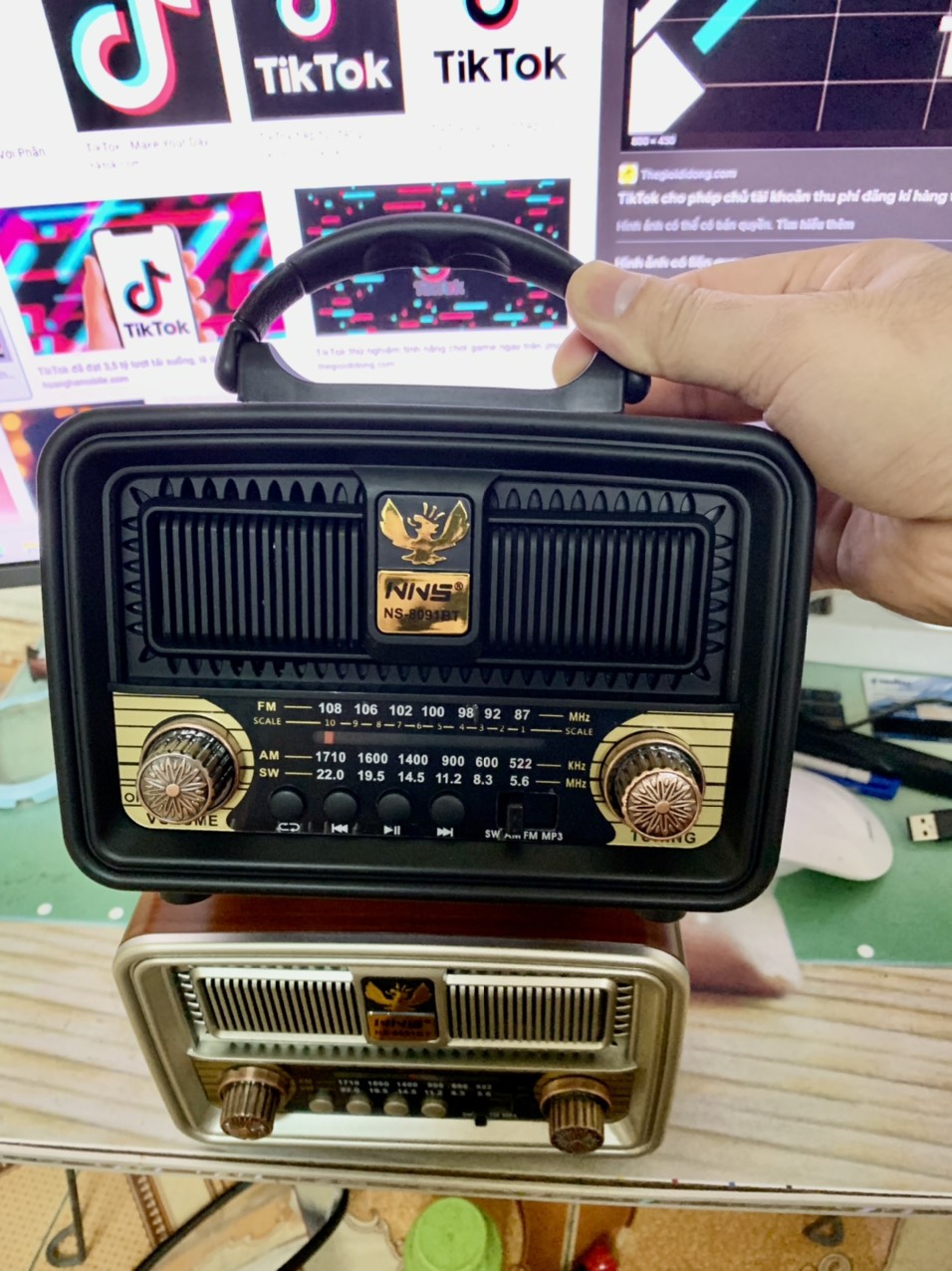 Đài radio NNS 8091BT pin 6 tiếng giá 234K. Kết nối bluetooth, FM, AM, SW có cổng usb, thẻ nhớ