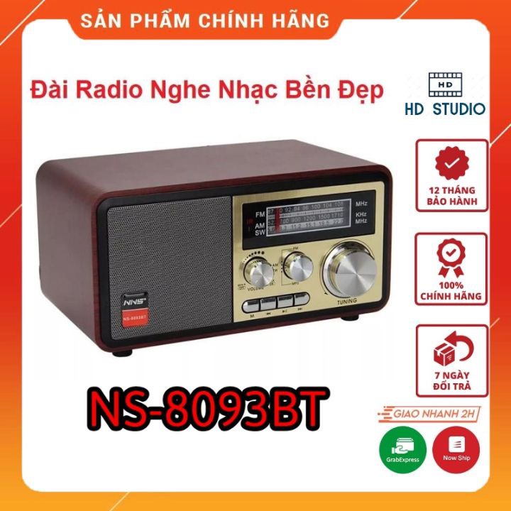 -GIỚI THIỆU SẢN PHẨM ĐÀI NS-8093BT - Đài Radio Bluetooth, Chính Hãng NNS Model NS-8093BT Bắt Sóng FM, AM, /USB/TF, Có Cổng Thẻ Nhớ, Đài Dùng Điện 220V Và Dùng Pin Sạc - Đài radio SN-8093 BT giá hợp lý sản phẩm chuyên dụng cho người cao tuổi, người bận bịu với công việc không có thời gian xem Tivi, đọc báo mà muốn nghe tin tức - Đài bắt được các đài tỉnh thành và đài tiếng nói Việt Nam Chức năng chính:- Nghe đài AM, FM, SW- Bắt sóng khỏe- Dễ sử dụng. - Chắc hẳn trong mỗi người dân Việt Nam chúng ta ai cũng có những kỷ niệm về chiếc ĐÀI RADIO/FM, AM Đặc biệt là những quân nhân, những người lớn tuổi đã từng trải qua năm tháng hào hùng của chiến tranh thì hình ảnh ấy lại càng sâu đậm hơn. Chính vì sự hoài niệm ấy, hôm nay shop em mang đến cho các anh/chị các cô/chú một sản phẩm - ĐÀI RADIO/FM cực kỳ chất lượng Đài Chính Hãng NNS Model NS-8093BT - Hi vọng các cô/chú/anh/chị sẽ có những phút giây ấm áp bên gia đình cùng với chiếc ĐÀI RADIO/FM này nhé.