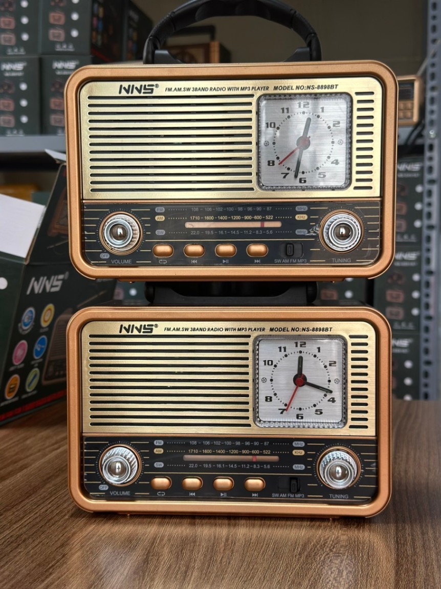 ✨Đài RadioFM-NNS 8898BT thiết kế tân cổ điển, kèm đồng hồ để bàn, bắt sóng FM cực khỏe đầy đủ tính năng nghe nhạc-Hàng Chính Hãng