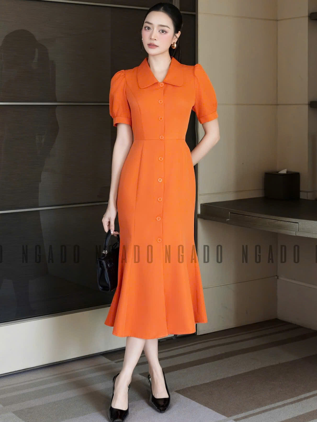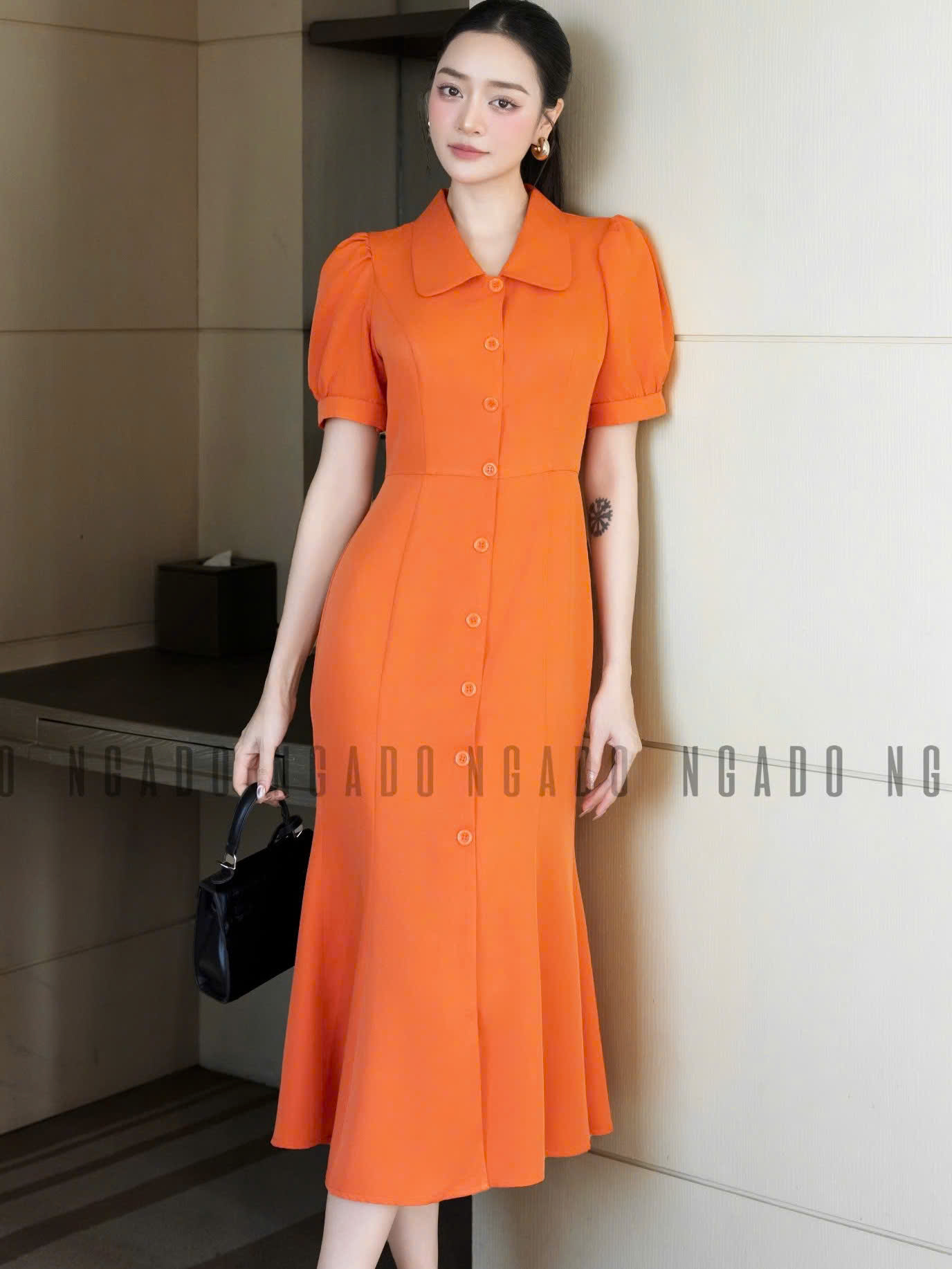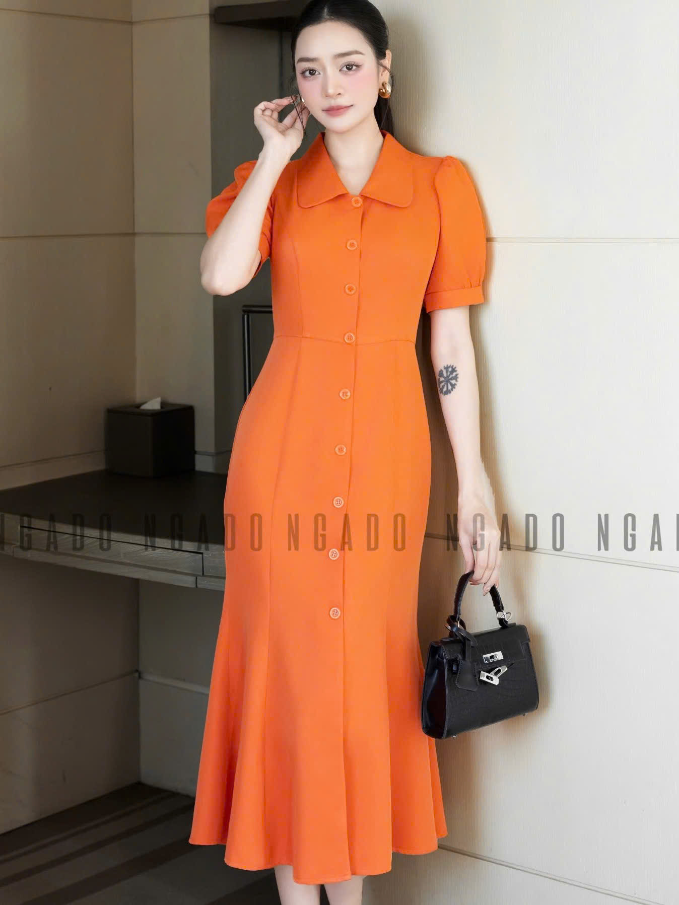 ✨Đầm cam xẻ vạt NGADO , đầm dáng dài , đầm dự tiệc , công sở
