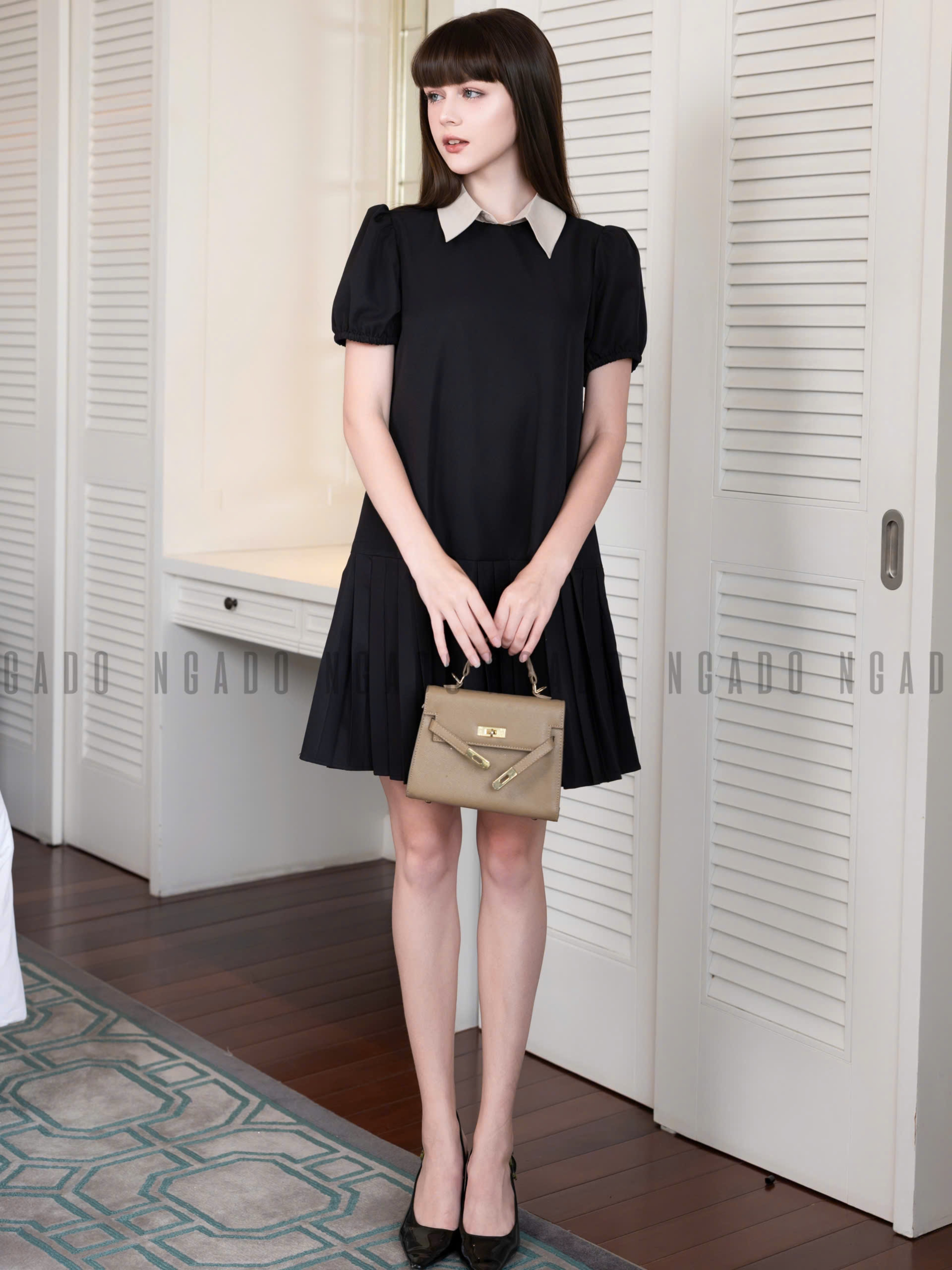 ✨Đầm đen cổ phối kem NGADO , đầm suông , đầm kiểu nữ