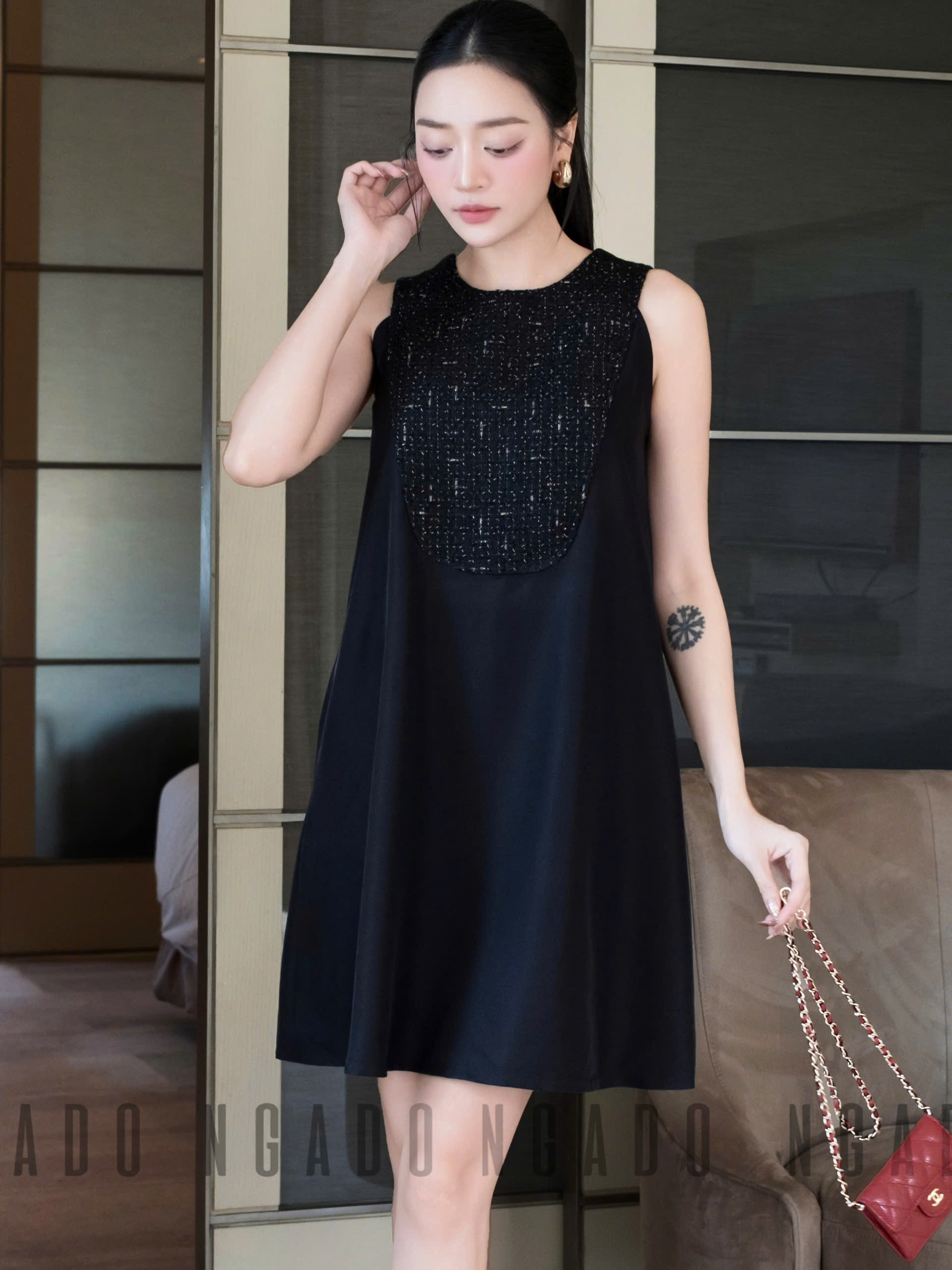 ✨Đầm đen phối tweed NGADO , đầm nữ ngắn , đầm thời trang , đầm dự tiệc