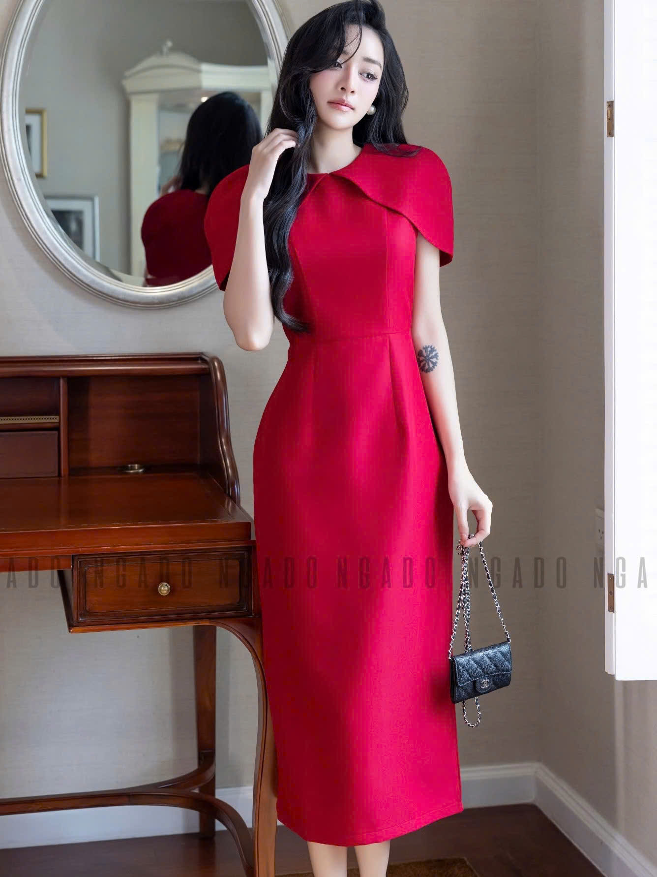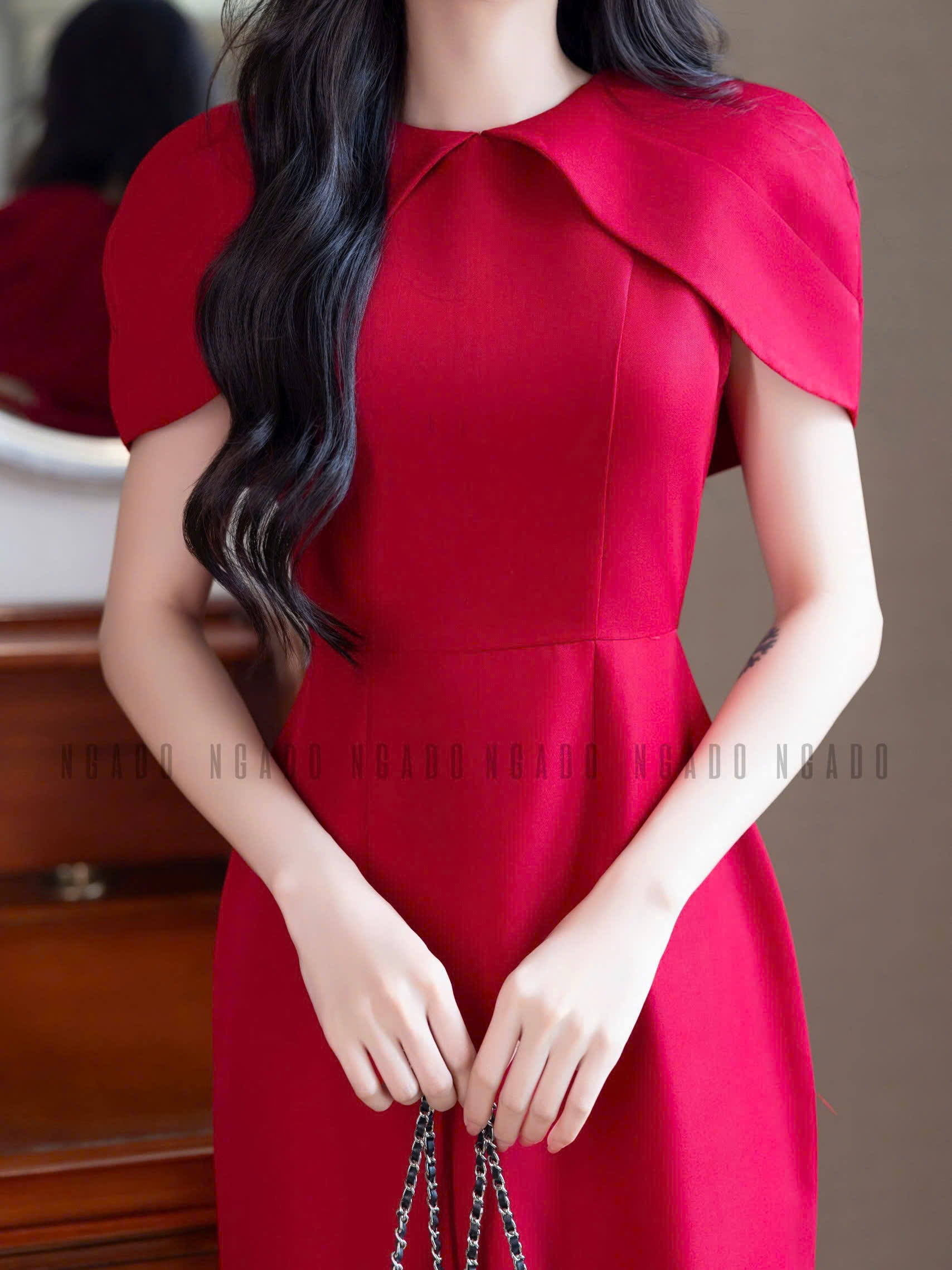 ✨Đầm đỏ cổ tròn NGADO , đầm dự diệc , đầm công sở