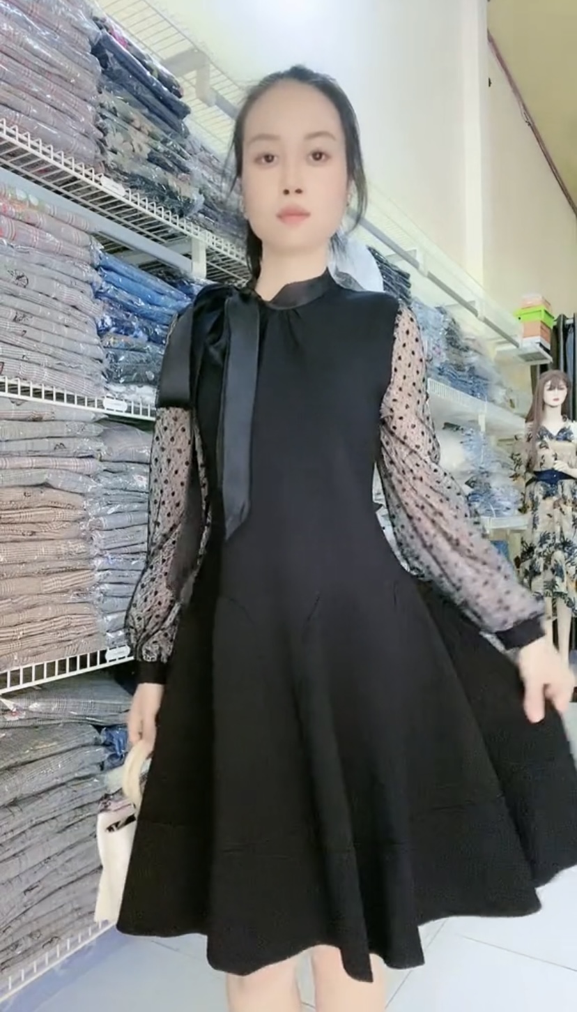 Đầm xếp ly voan lụa phối ren cao cấp Mã: DLBG010 Màu: Đen Chất liệu: Voan lụa, ren thêu loại 1 bền chắc Số đo vòng1/vòng2(cm): 80/70