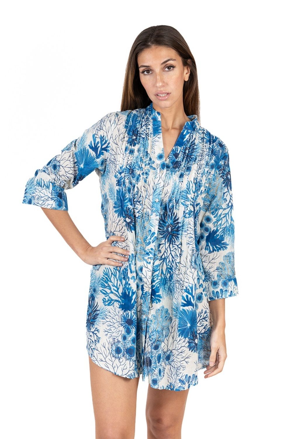 Đầm Sơ Mi Cotton Isla Bonita, chất liệu cotton 100% mềm mại. Đầm giấu quần, phối với quần short, legging. Phom suông. Dài đầm 105cm (45x105) Phù hợp đi biển, dạo phố, công sở, hoặc