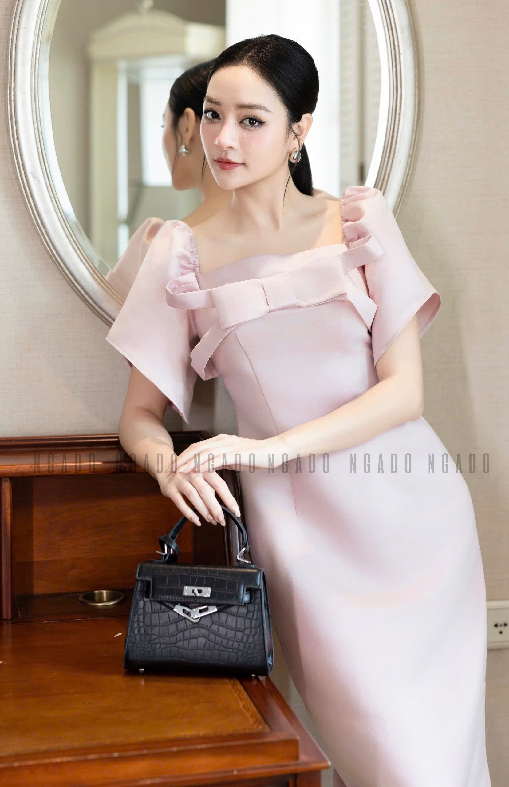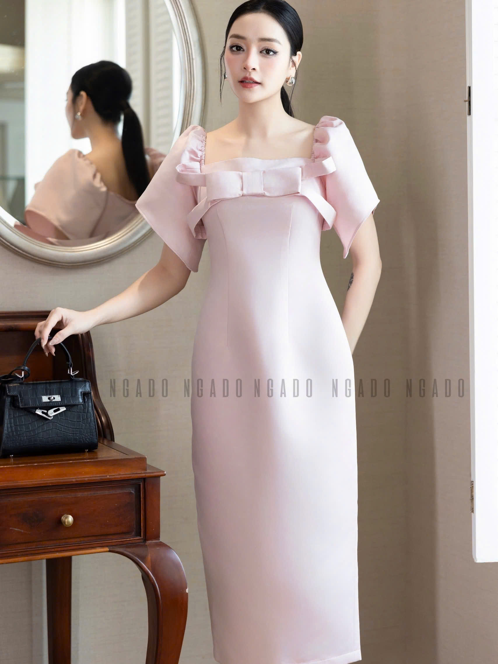✨Đầm hồng cổ vuông tay phồng NGADO , đầm dự tiệc , đầm sang trọng
