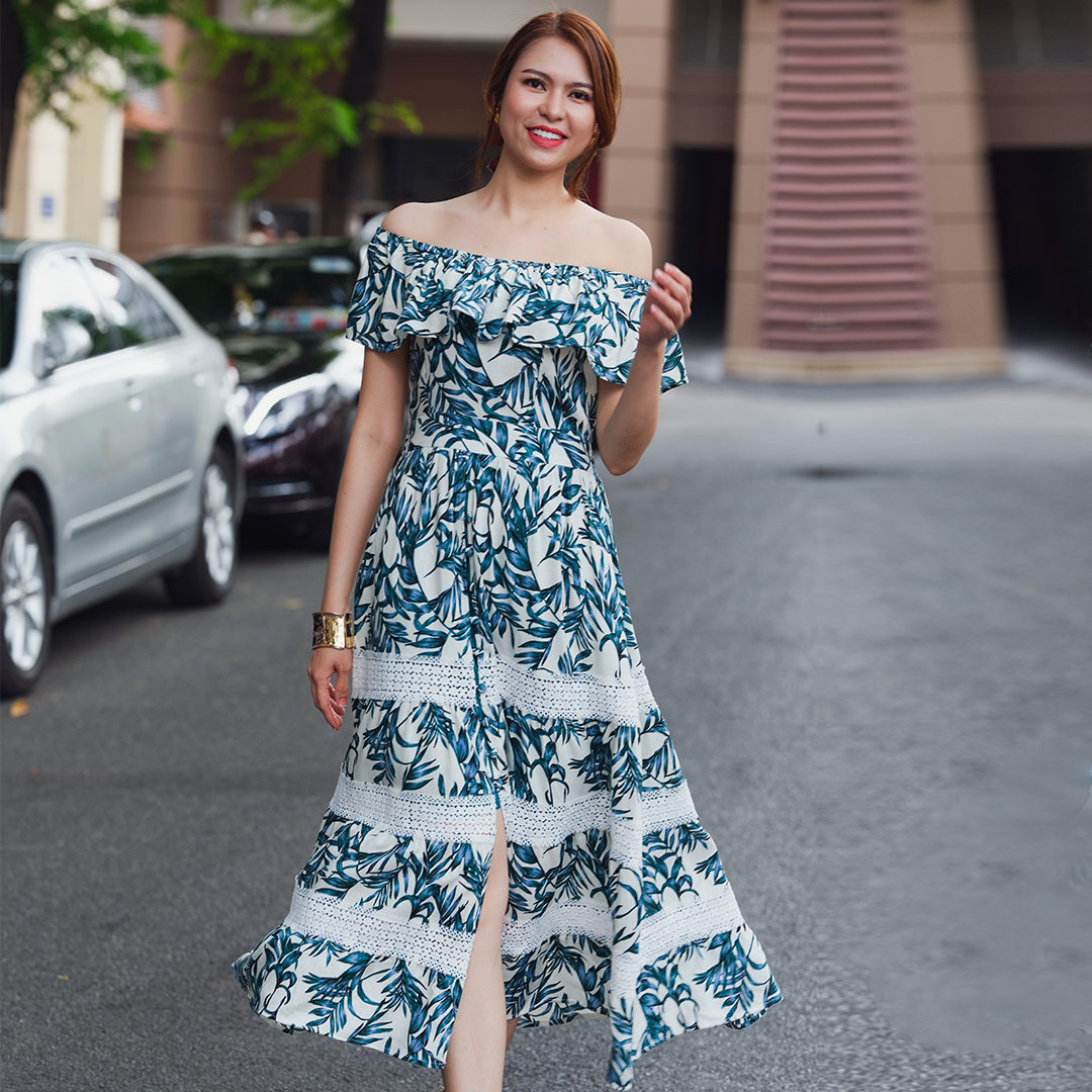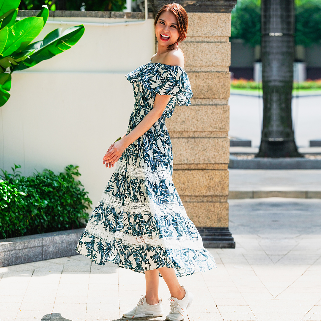 Đầm Maxi Trễ Vai Hoạ Tiết - bản tình ca giao mùa