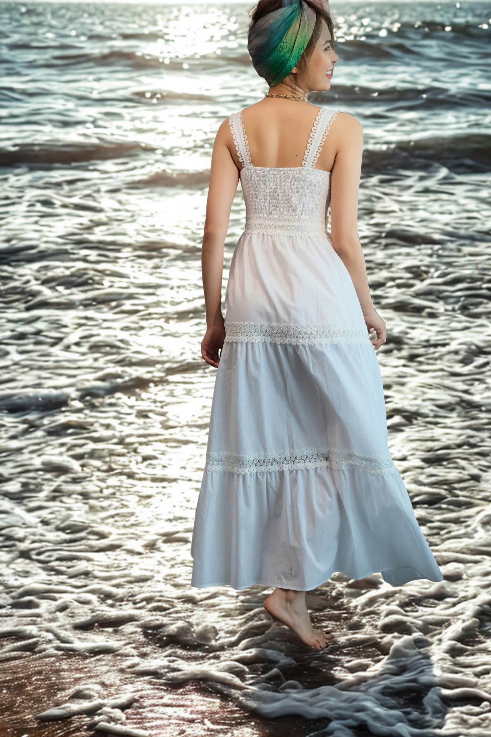 ✨Đầm Maxi Trắng Cotton Hai Dây Đi Biển Du Lịch Resorts Thơ DRE092 Thời trang Hity