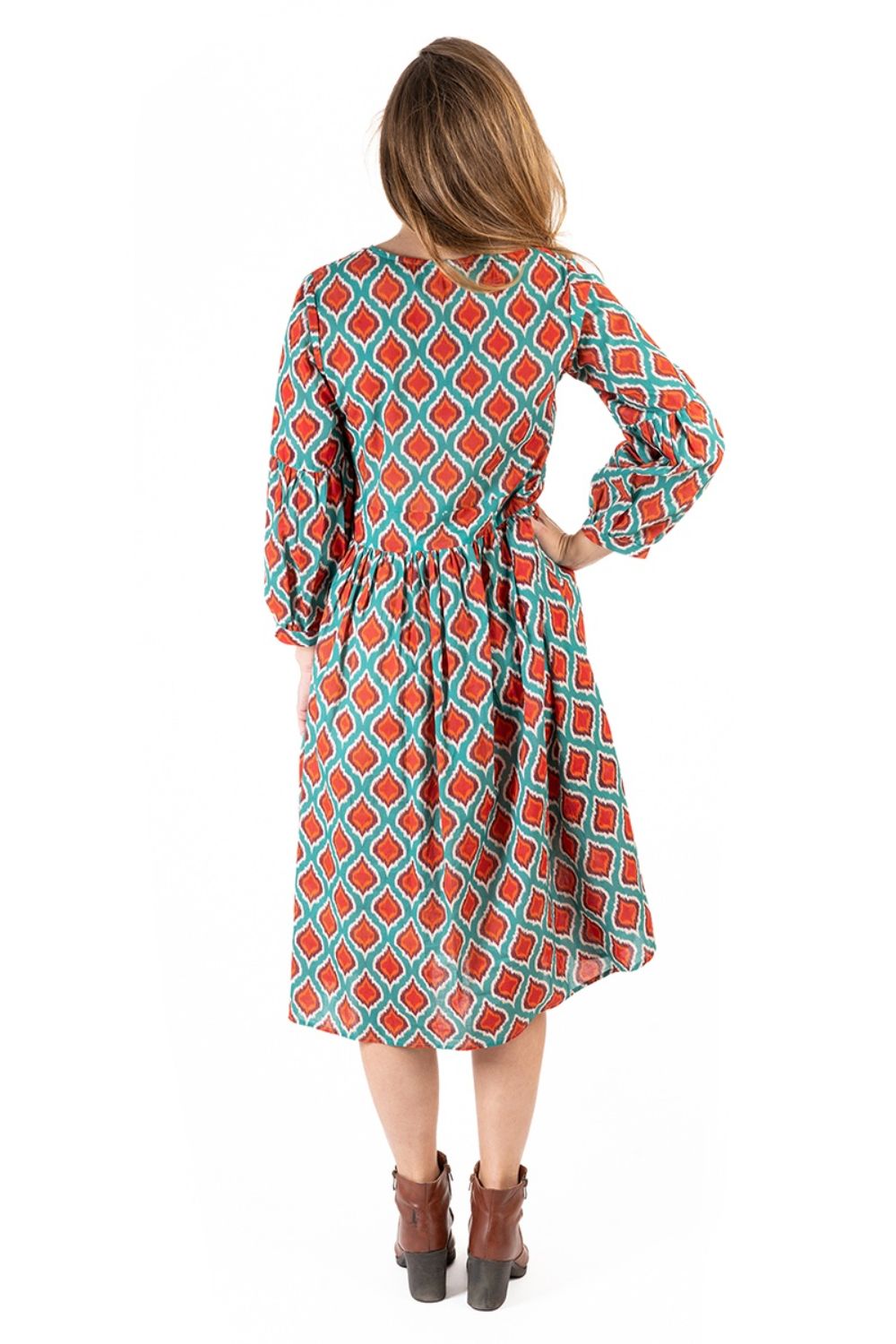Maxi Boho Cotton Isla Bonita, chất liệu cotton cao cấp, mềm mại. Họa tiết thổ cẩm ấn tượng. Phom xòe rộng. Dài đầm 130cm (45x130) Phù hợp đi biển, dạo phố, công sở, hoặc dự