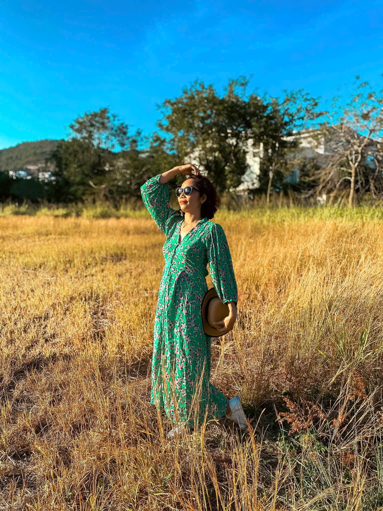 Mùa Xuân Hè, mang theo những cánh hoa rực rỡ khoe sắc trên cành. Nắng Hè cũng đang dần len lỏi, hứa hẹn một mùa mới tràn đầy sức sống. Hòa cùng bầu không khí tươi vui ấy, hãy khoác lên mình chiếc đầm midi hoa nhẹ nhàng, thanh thoát, để bay bổng lướt cùng gió mây.