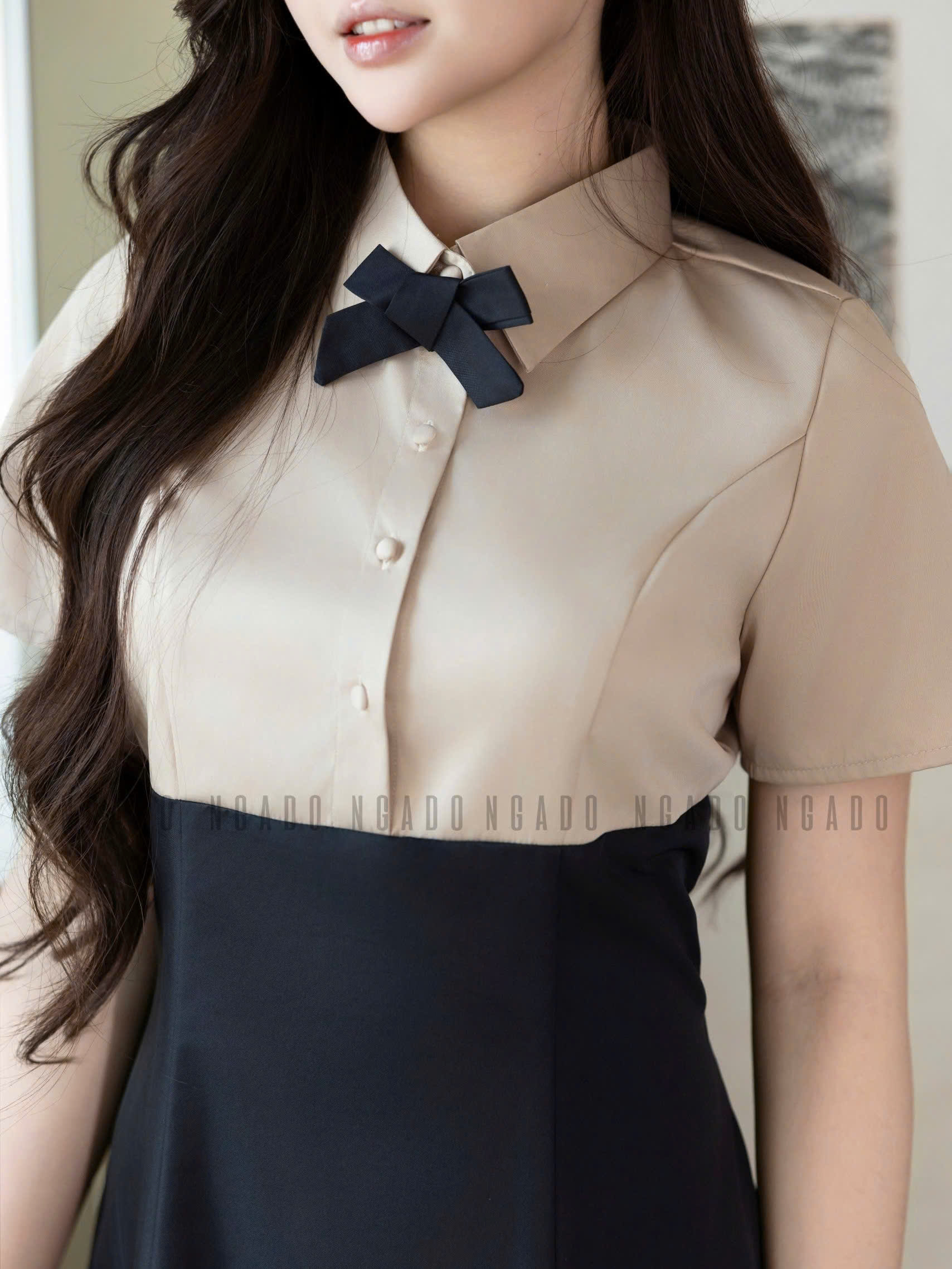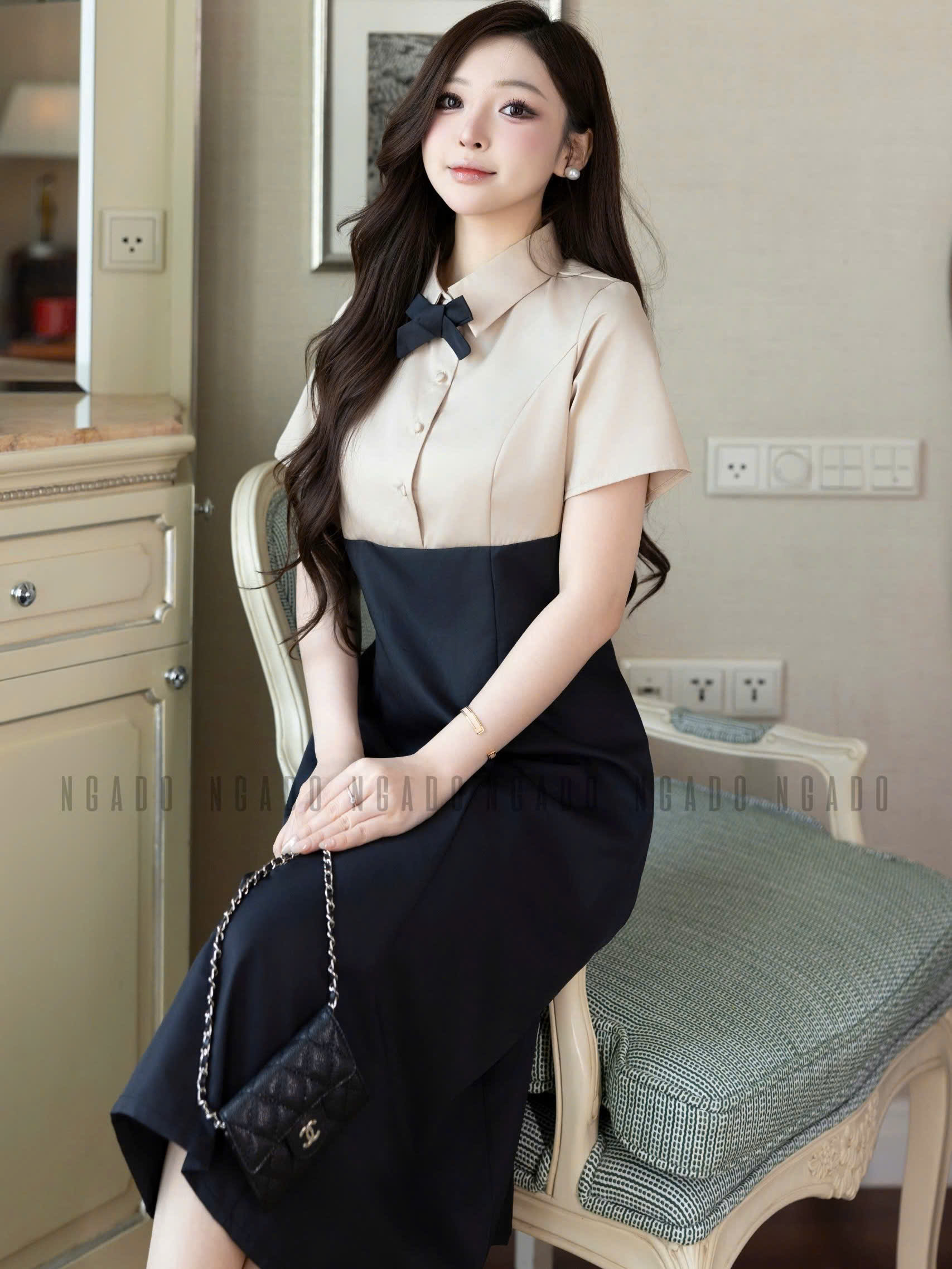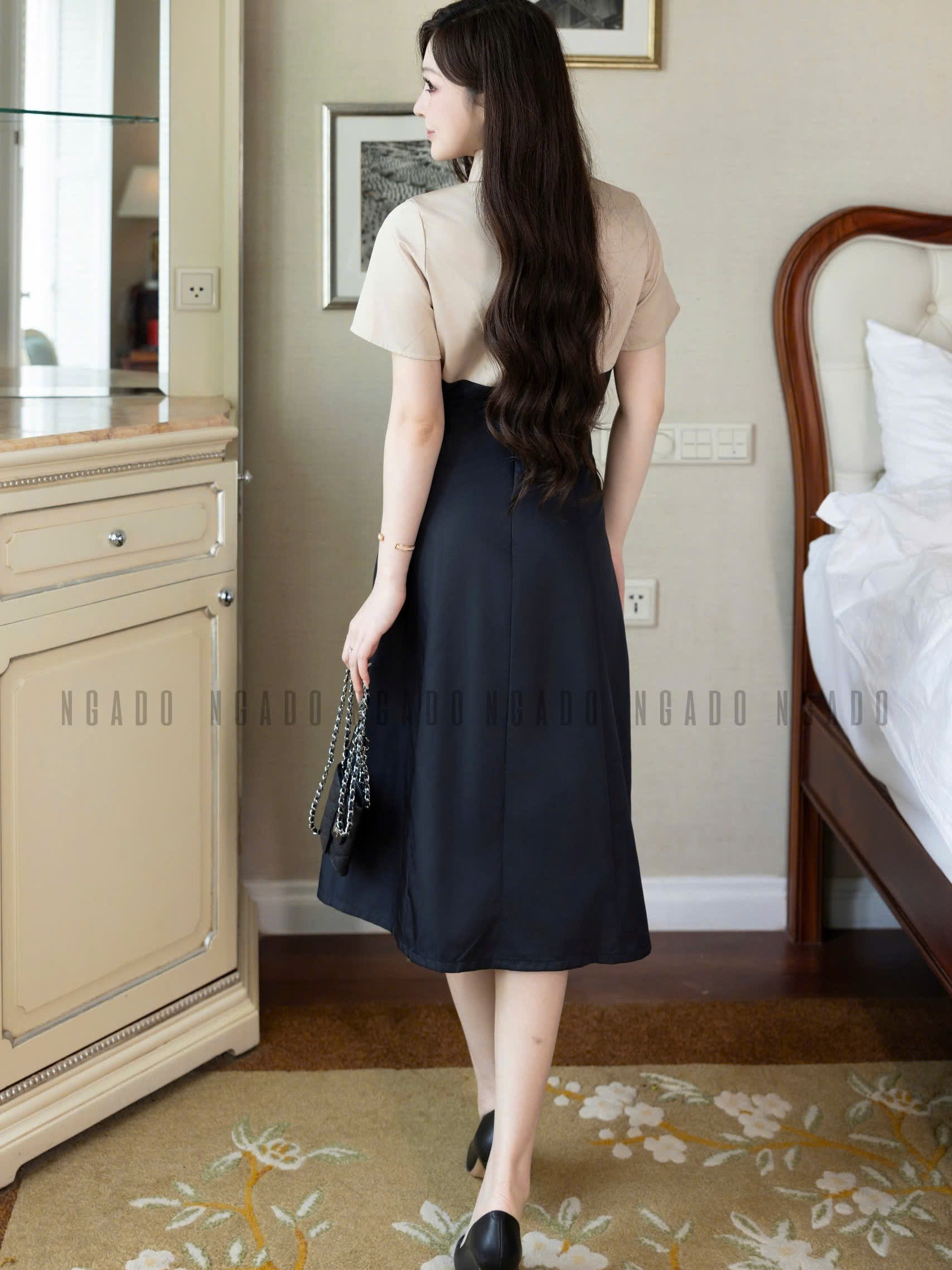 ✨Đầm nude phối đen NGADO