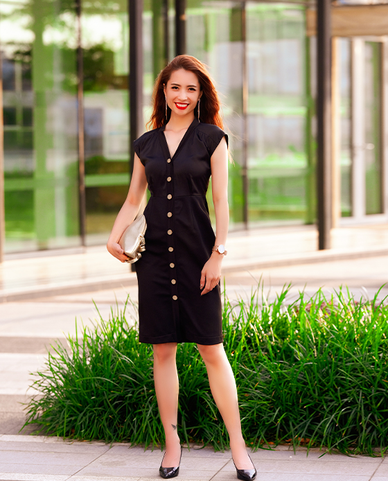 Chiếc đầm phối satin đen quyền năng mang đến cho nàng sức mạnh tiếp thêm tự tin trong cuộc sống. Mặc đẹp để quên những mệt nhọc và áp lực cuộc sống. Mặc đẹp để tự tin làm chủ cuộc đời mình.