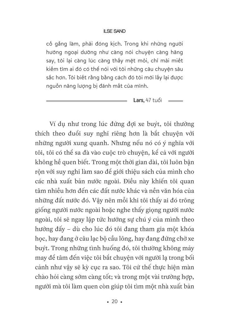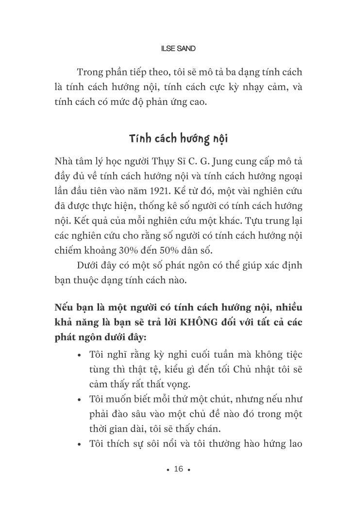 Dám sống hướng nội và cực kỳ nhạy cảm là tác phẩm đúc kết nhiều năm tháng làm mục sư và chuyên gia tư vấn tâm lý của Ilse Sand. Nhưng trên hết, nó là trải nghiệm của một người hướng nội đã thoát ra mặc cảm để tìm thấy niềm vui sống và phát huy hết những năng lực mà tính cách hướng nội của mình mang lại.