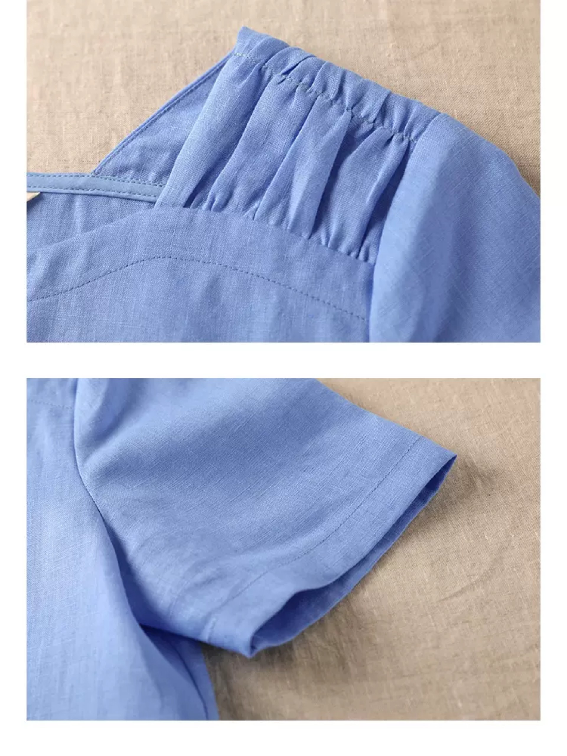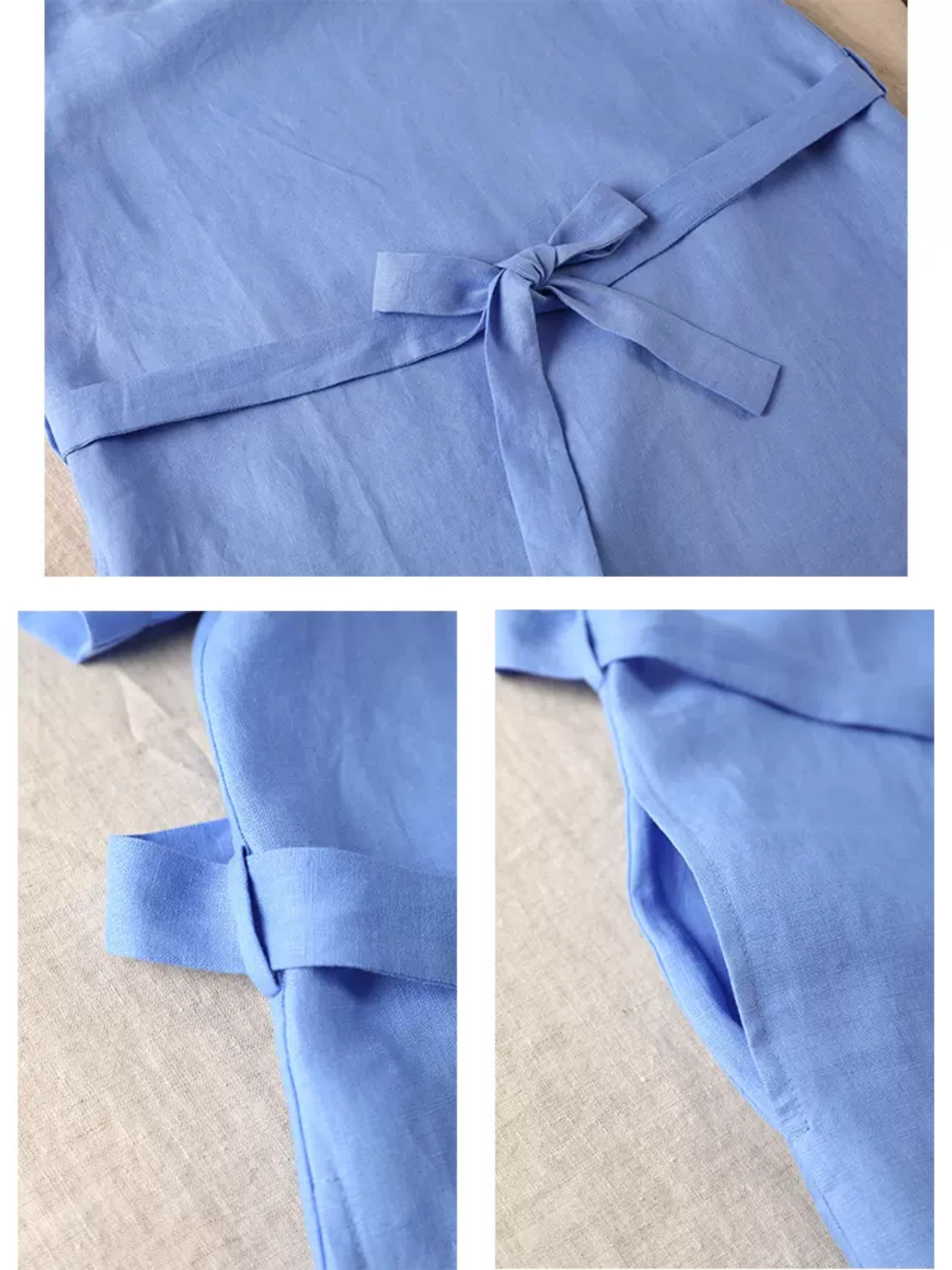 Chất liệu: 100% Linen. Được làm từ cây lanh, loài thực vật cần rất ít nước tưới và giúp thúc đẩy đất đai màu mỡ cũng như đa dạng sinh học. Sợi vải rất thoáng