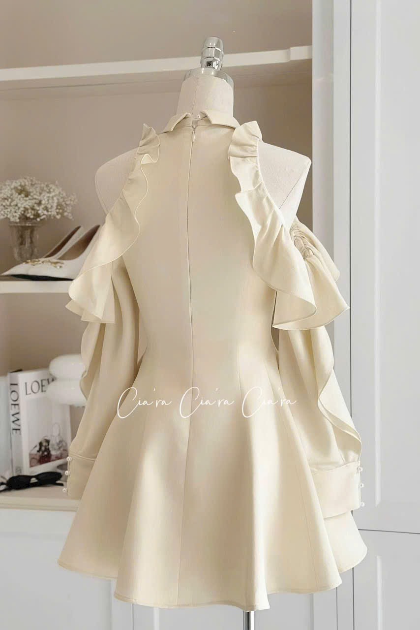 ღ THÔNG TIN SẢN PHẨM:   Tên sản phẩm: Đầm kem cổ xếp tầng   Chất liệu: Chất tơ   Chi tiết sản phẩm: có lót, không túi   Thông số size: S, M, L,