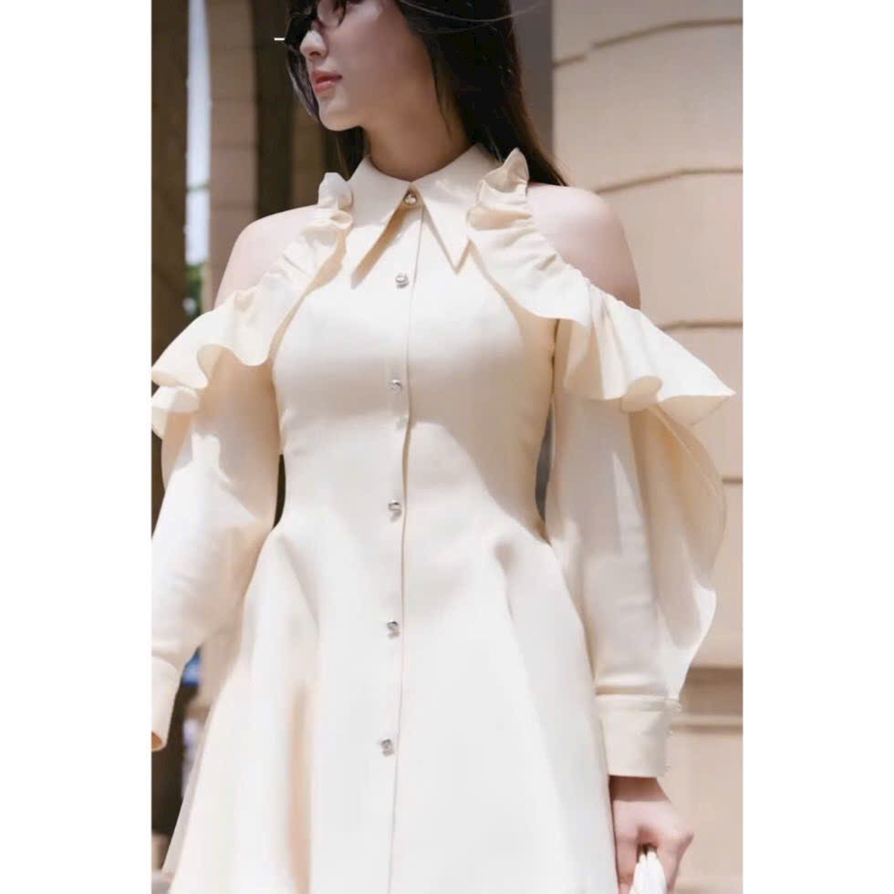 D4980] Váy thiết kế ren cúc bọc tay bồng pha chân tơ dáng dài Shop về 2 size S.M 2 màu trắng và kem Sản phẩm này là tài sản cá nhân được bán bởi
