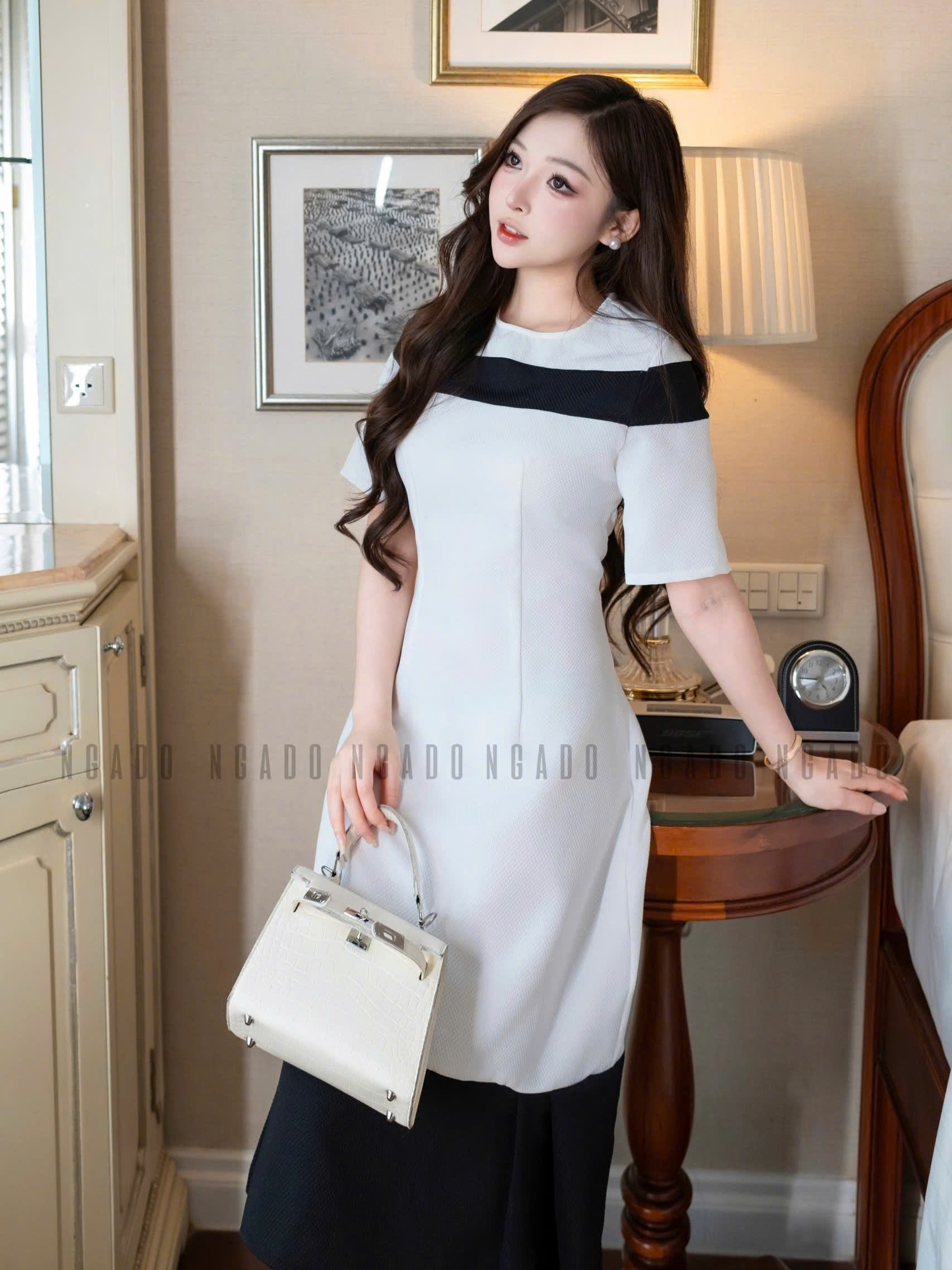 ღ THÔNG TIN SẢN PHẨM: Tên sản phẩm: Đầm đuôi cá đen phối trắng Chất liệu: Chất gân ý Chi tiết sản phẩm: có lót áo không lót tùng váy, không túi