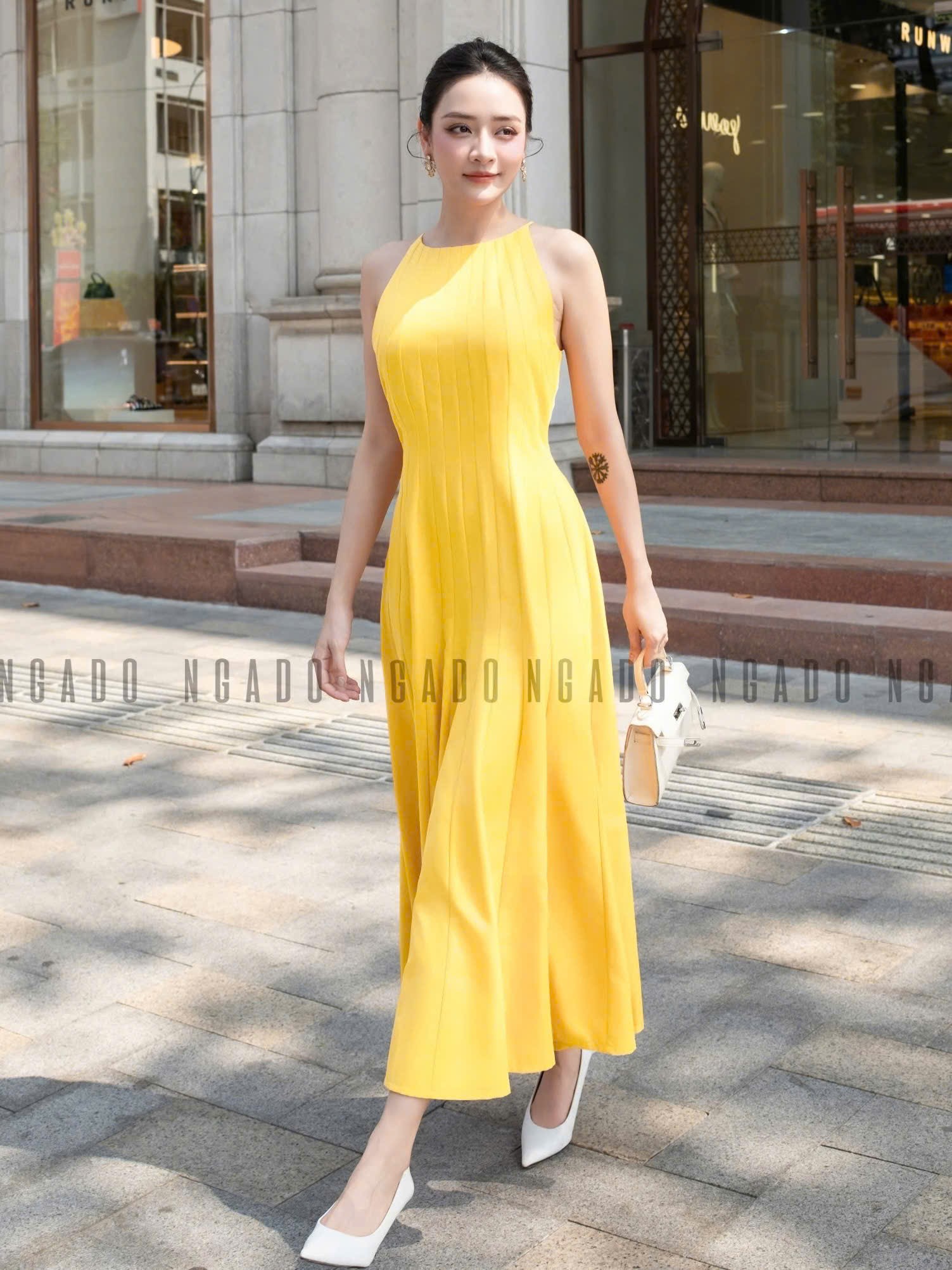✨Đầm vàng chanh cổ yếm NGADO , đầm cổ yếm , đầm kiểu Nữ