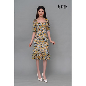 ✨Đầm Voan Nữ Cổ Vuông, Họa Tiết Hoa Vàng Cổ Điển Maxivic, La Mộc LM62122