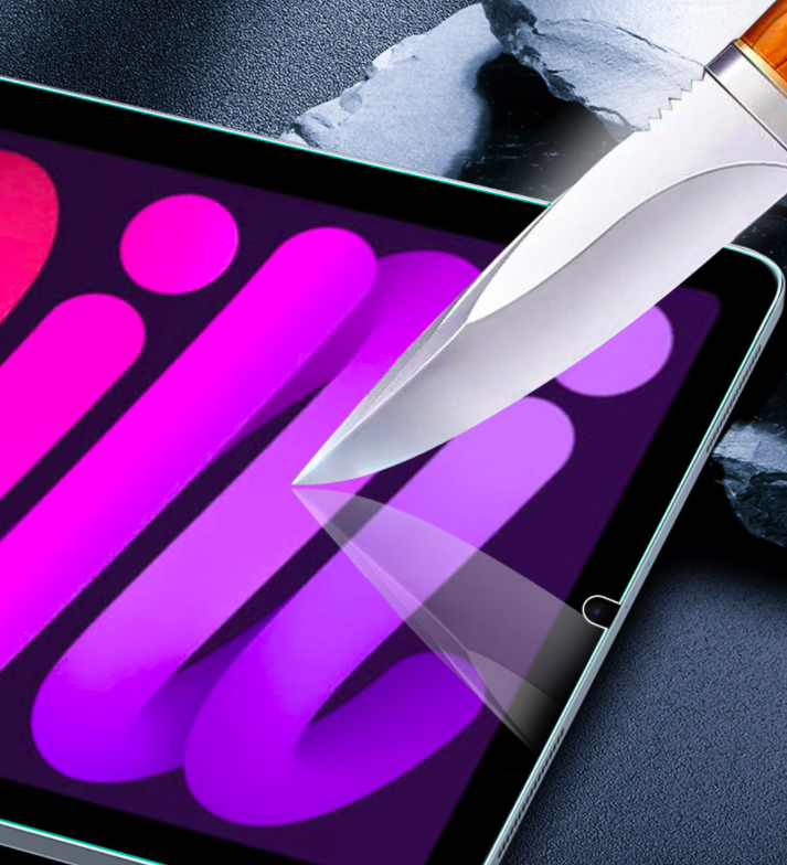 Miếng dán kính cường lực, chống vỡ màn hình cho iPad Mini 7. Bảo vệ màn hình một cách hoàn hảo với độ cứng lên tới 9H (gấp 20 lần tấm dán film sử dụng trong