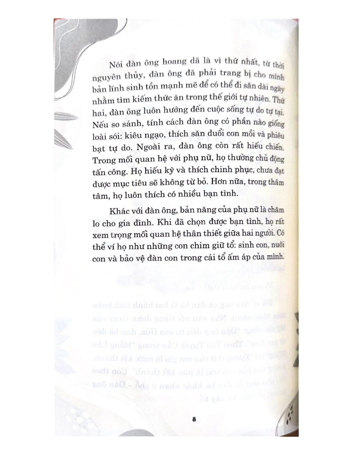 Đàn ông hoang dã, đàn bà xây tổ sẽ tiết lộ cho bạn biết bí quyết giữ người yêu, giữ lửa hôn nhân dựa trên việc nghiên cứu kỹ lưỡng bản năng giới tính của đàn ông và đàn bà. Để có bạn đời chung thủy và hôn nhân hạnh phúc mỹ mãn, bạn đừng bỏ qua cuốn sách này!
