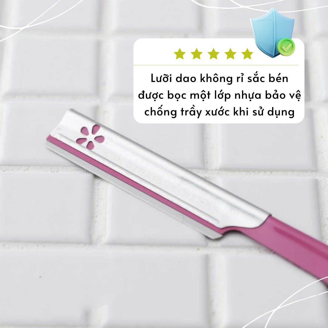 - Thân dao được làm từ nhựa dẻo cao cấp và được kháng khuẩn tốt nên rất an toàn khi sử dụng. Bộ sản phẩm gồm 5 cây dao, lưỡi dao cạo rất sắc bén, cạo rất êm, dao rất bềṇ ̣(có thể sử dụng lại nhiều lần vì lưỡi rất lâu cùn). - Dao được thiết kế chuyên dụng dành cho phụ nữ giúp cạo lông mày, lông mặt. Không thay thế được lưỡi, bỏ đi sau khi lưỡi dao đã cùn.