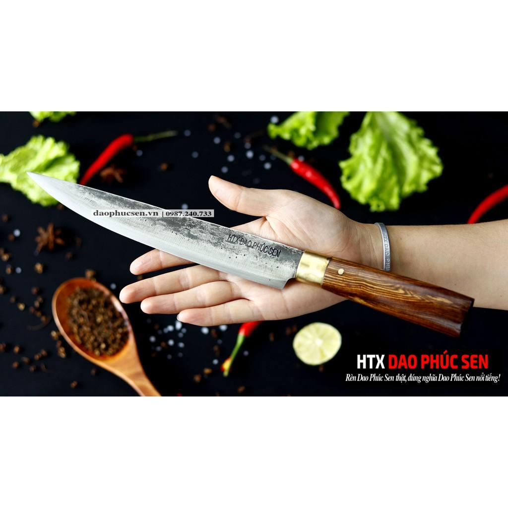 Dao Phúc Sen bản Takohiki - Kích thước: lưỡi: 24cm, cán: 12cm, rộng: 3.5cm, dầy: 2.5 ly, trọng lượng: 200g - Chức năng: sử dụng chuyên thái thịt ,cá, rau củ và các thực phẩm