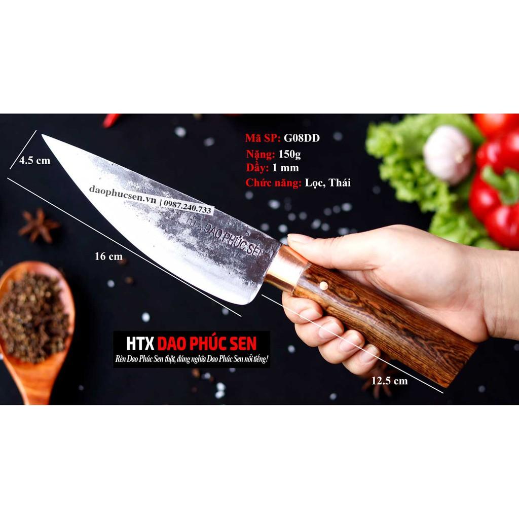 Dao Phúc Sen Dao Bầu Lọc 16 Cán cẩm Khâu Đồng G08D - Kích thước: lưỡi: 16cm, cán: 12cm, rộng: 4,5cm, dầy: 0,1, trọng lượng: 150g - Chức năng: sử dụng chuyên lọc cá thịt