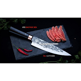 Dao Phúc Sen bản Takohiki - Kích thước: lưỡi: 24cm, cán: 12cm, rộng: 3.5cm, dầy: 2.5 ly, trọng lượng: 200g - Chức năng: sử dụng chuyên thái thịt ,cá, rau củ và các thực phẩm