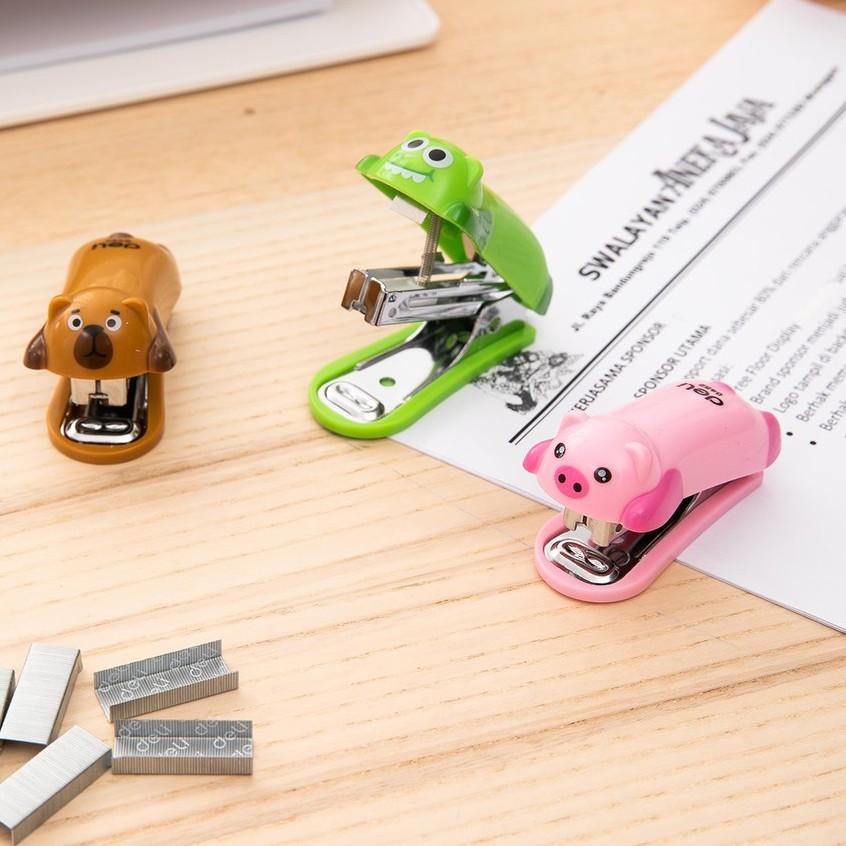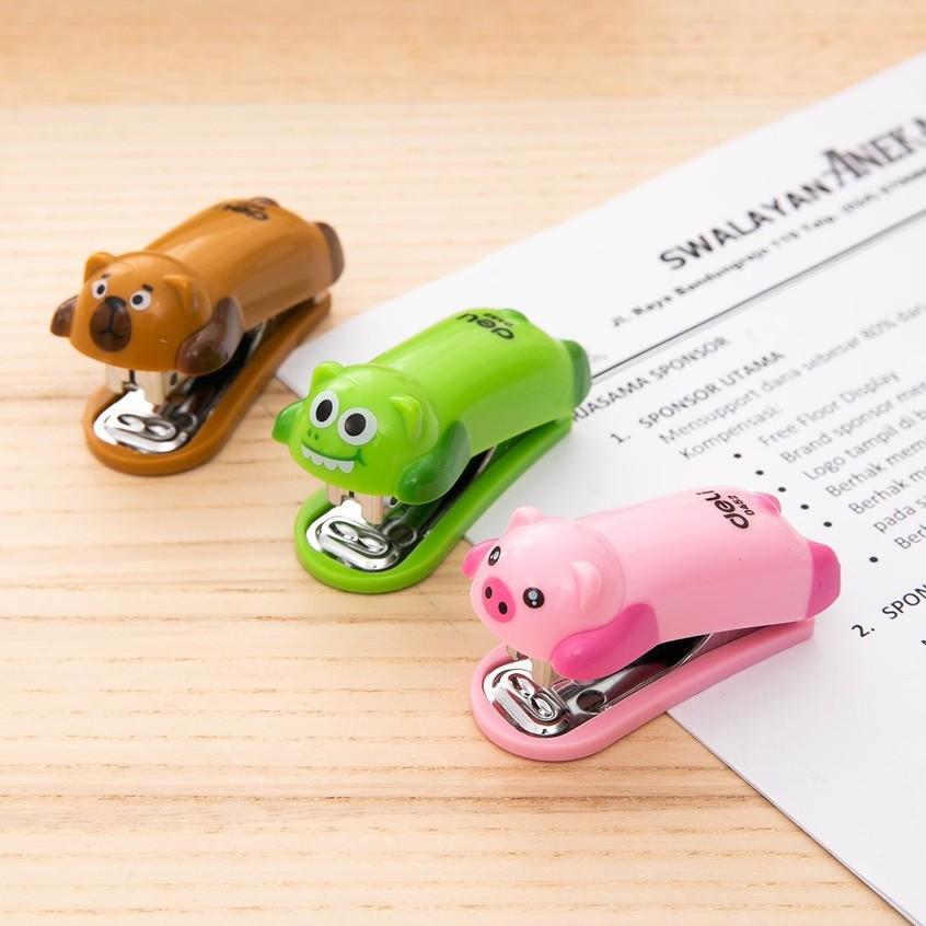 ✨ Dập ghim mini #10 Deli - 12 trang, gấu nâu, lợn hồng, cá sấu xanh - 1 cái - E0452