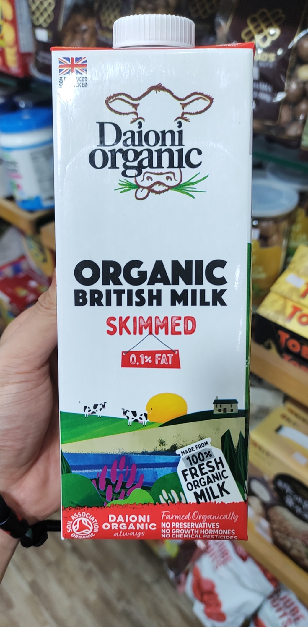 Sữa Tươi Hữu Cơ Tách Béo Tiệt Trùng 0.1% DAIONI 1 LITXuất xứ: Anh. Date: 12 tháng kề tù ngày sản xuất