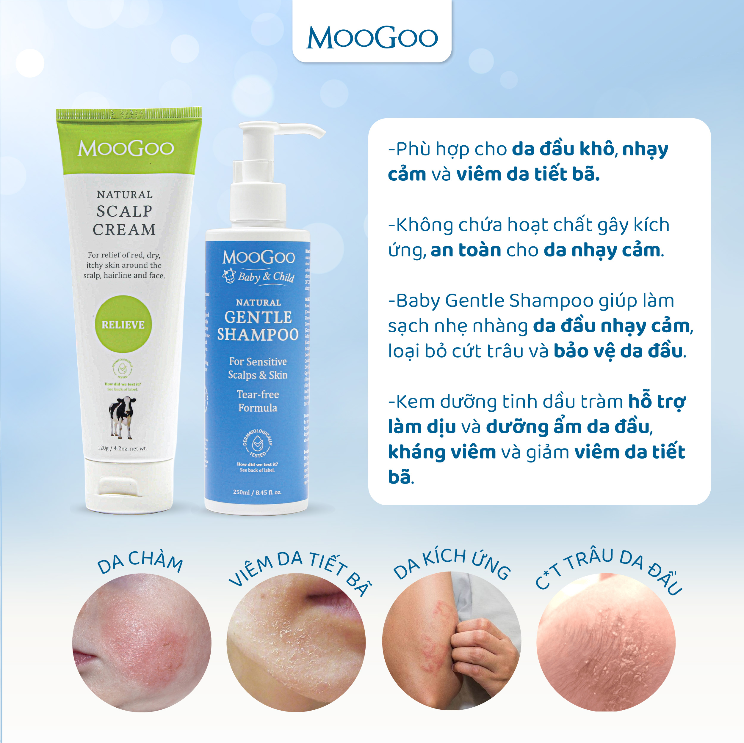 Dầu gội tự nhiên dịu nhẹ MooGooi Baby Gentle Shampoo của MooGoo là sự lựa chọn hoàn hảo cho làn da nhạy cảm và da đầu mỏng manh của bé. Được thiết kế với công thức tự nhiên, dịu nhẹ, sản phẩm phù hợp cho mọi lứa tuổi, kể cả trẻ sơ sinh, và mọi loại da, bao gồm cả da nhạy cảm viêm da tiết bã, viêm da cơ địa, mẹ bầu và mẹ cho con bú.