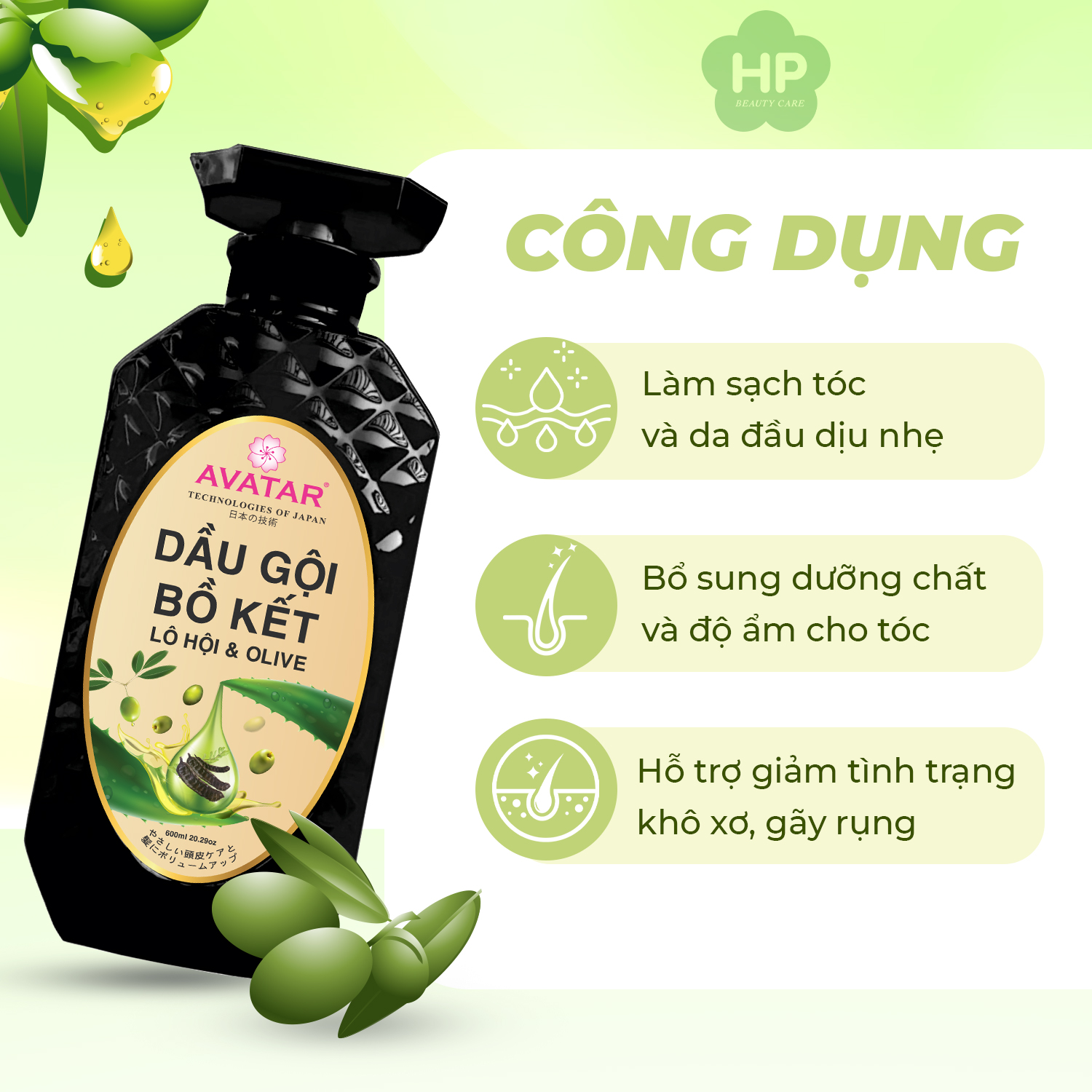 CÔNG DỤNG DẦU GỘI ĐẦU BỒ KẾT LÔ HỘI VÀ OLIVE AVATAR: