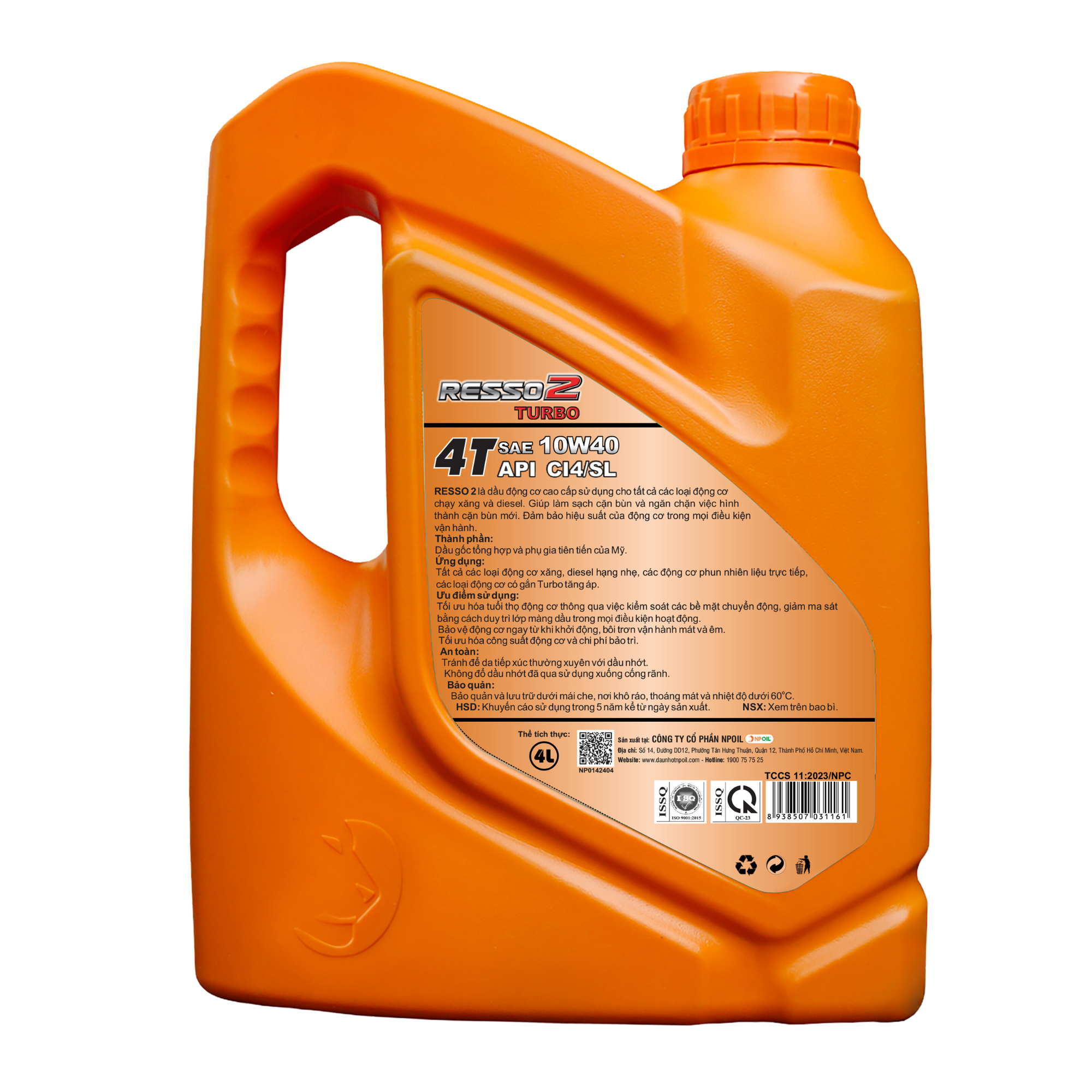 Dầu nhớt động cơ xe ôtô  RESSO 2 - CI4/SL - 10W40 - Can 4L/5L/6L - Hàng Chính HãngDầu nhớt động cơ xe ôtô  RESSO 2 - CI4/SL - 10W40 - Can 4L/5L/6L - Hàng Chính Hãng