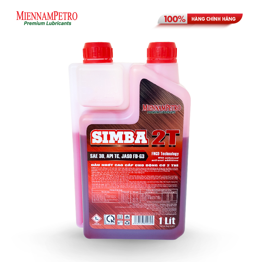 Dầu Nhớt MiennamPetro Simba 2T SAE 30 API TC JASO FD-63 1L Dành Cho Động Cơ Và Xe Máy 2 Thì Chất Lượng CaoDầu Nhớt MiennamPetro Simba 2T SAE 30 API TC JASO FD-63 1L Dành Cho Động Cơ Và Xe Máy 2 Thì Chất Lượng Cao