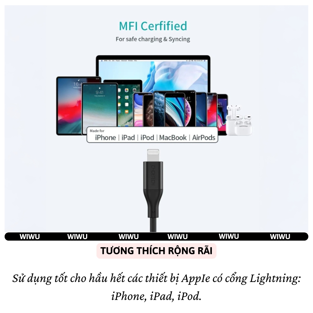 Cáp được chứng nhận MFi, đảm bảo khả năng hoạt động ổn định và lâu dài trên mọi thiết bị dùng cổng sạc L(iP).