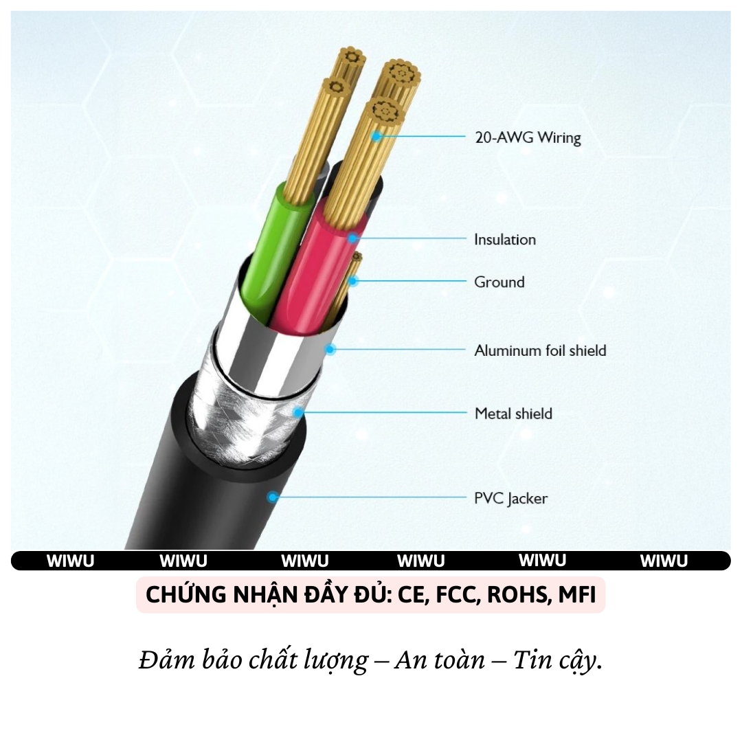 THÔNG TIN CƠ BẢN - Thương hiệu: WiWU - Model: Wi-C056 - Loại cáp: Type-C to L - Chiều dài cáp: 100cm - Chất liệu: Dây bện dù siêu bền, đầu cáp hợp kim titan -