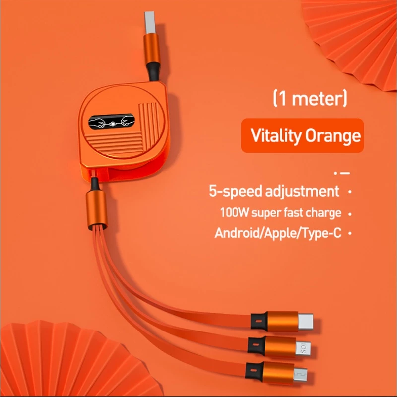 Cáp sạc nhanh 3 đầu 100W, tự động ngắt điện khi sạc đầy, bảo vệ và kéo dài tuổi thọ pin
