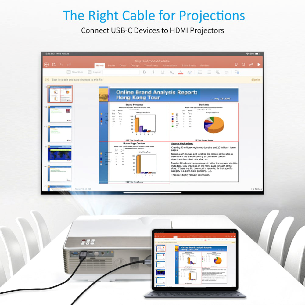 PLUG AND PLAY - Cáp USB C to HDMI không cần trình điều khiển / phần mềm / phần cứng / bộ chuyển đổi bổ sung để kết nối thiết bị USB-C 3.1 của bạn với màn hình, máy chiếu hoặc TV có cổng HDMI, truyền video và âm thanh độ nét cao từ máy tính của bạn để phát trực tuyến video hoặc chơi game. Kết hợp hoàn hảo với MacBook Pro, MacBook Air, iMac, iPad Pro 2020/2019/2018/2017/2016.