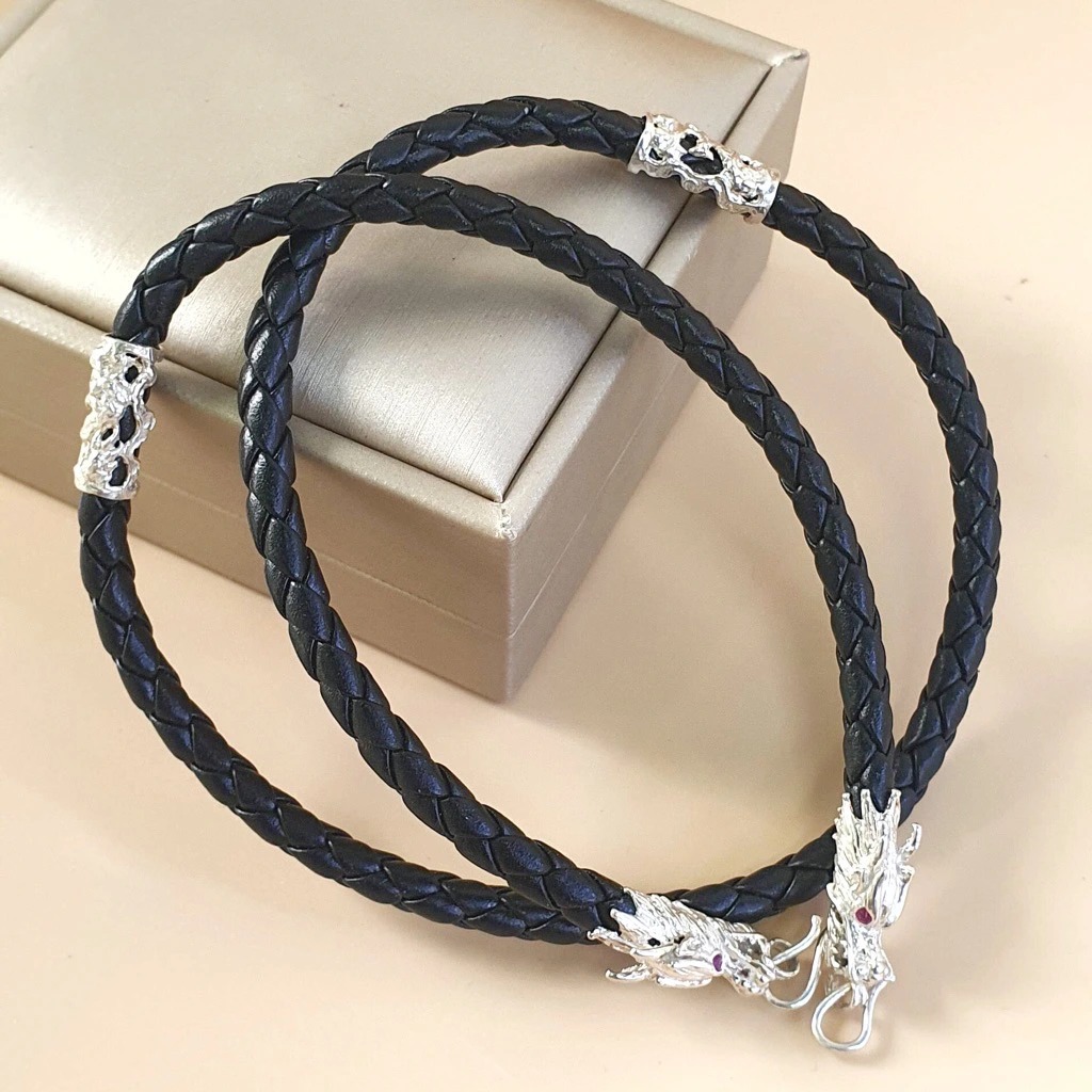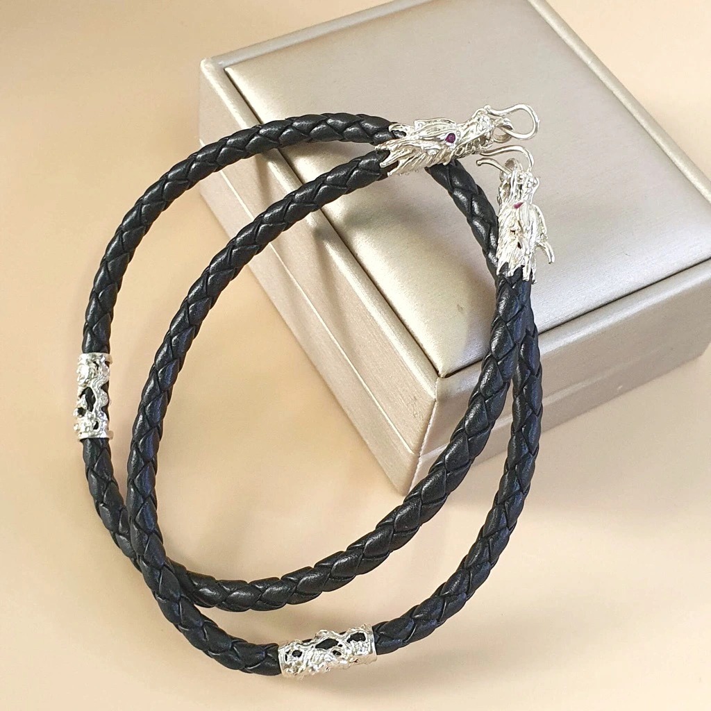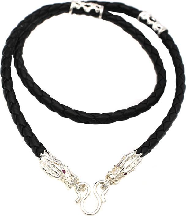 Dây Chuyền Vòng Cổ Dây Da Bọc Bạc Ta Nam Hình Rồng Bạc Hiểu Minh DDN031