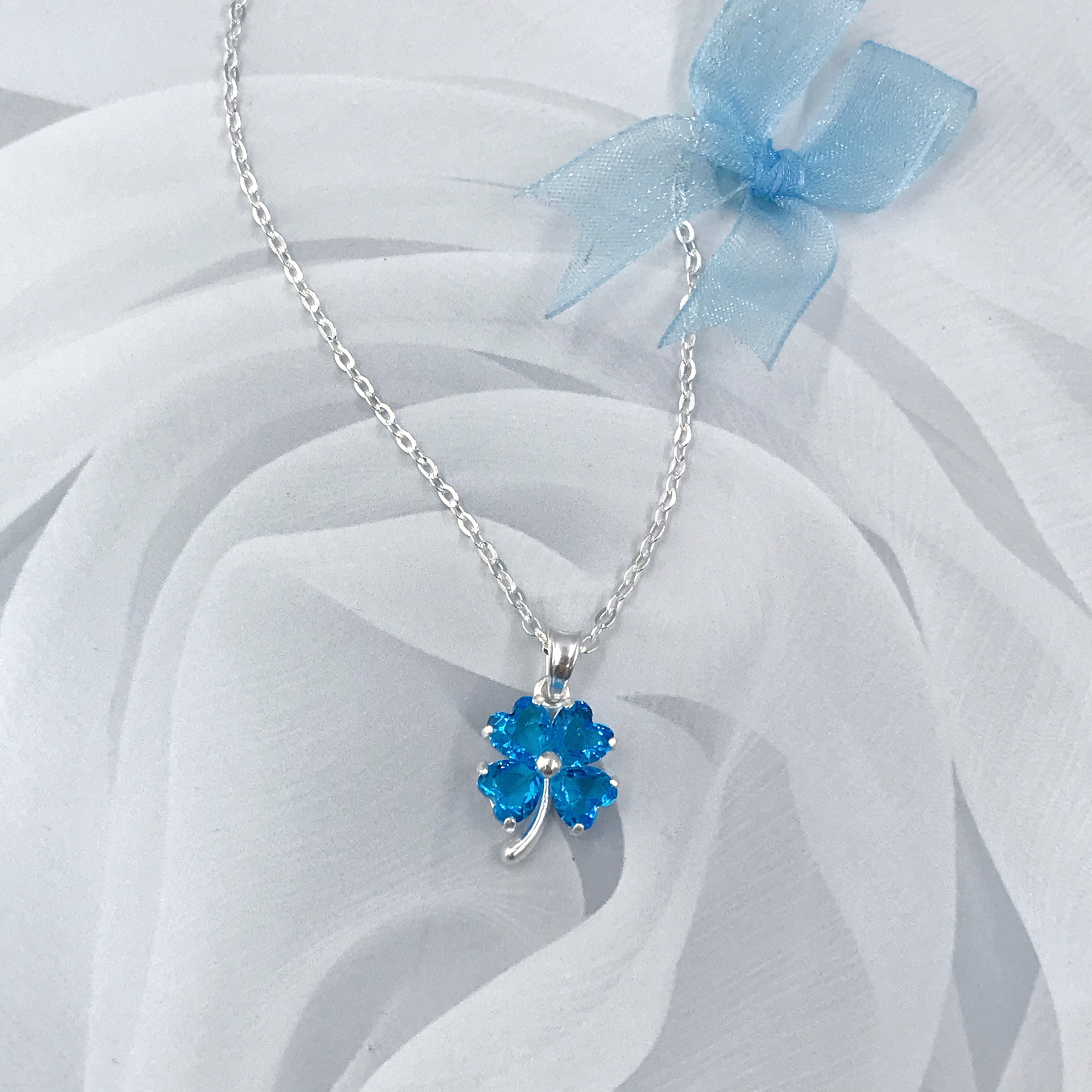 ✨Dây Chuyền Vòng Cổ Bạc 925 Cao Cấp Cỏ 4 Lá Xanh Dương Mix Đá CZ Chống Xước Sang Trọng Sáng Đẹp BẠC HIỂU MINH DMD454