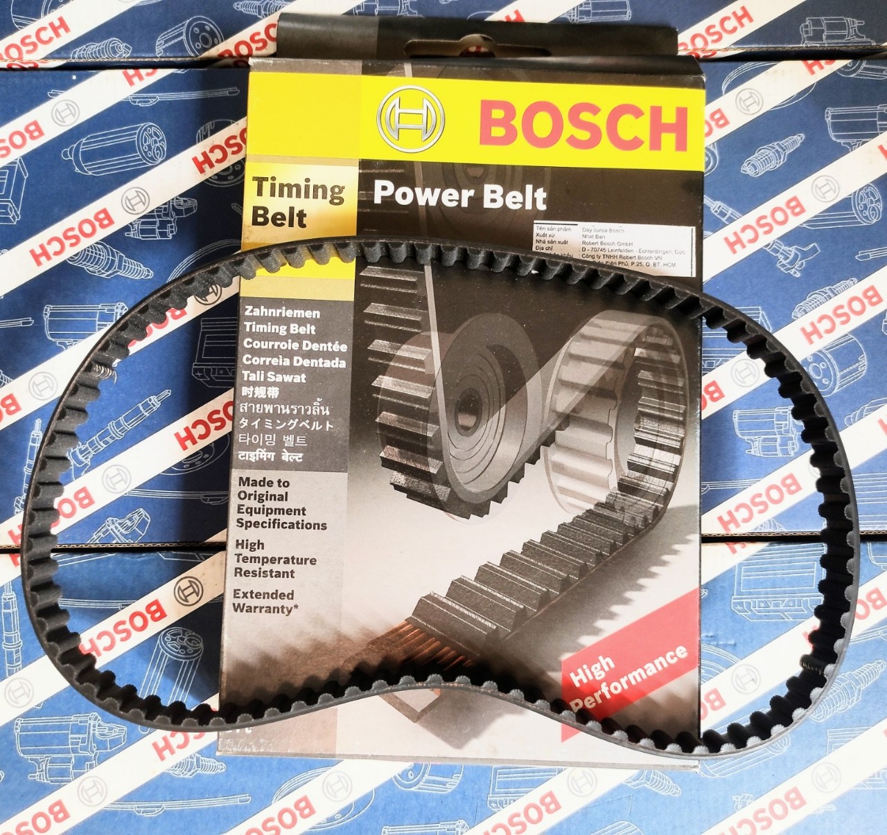 Mô tả sản phẩm Dây cam Bosch :– Lớp vải sợi bọc ngoài với cấu trúc sợi chéo– Các dây chụi lực kéo bền, chắc và kéo căng– Cao su chụi nén do tăng cường