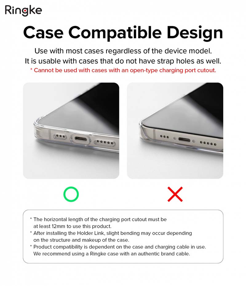 - Với dây Holder Link Strap có miếng holder link black (màu đen) KHÔNG TƯƠNG THÍCH với ốp RINGKE SLIM