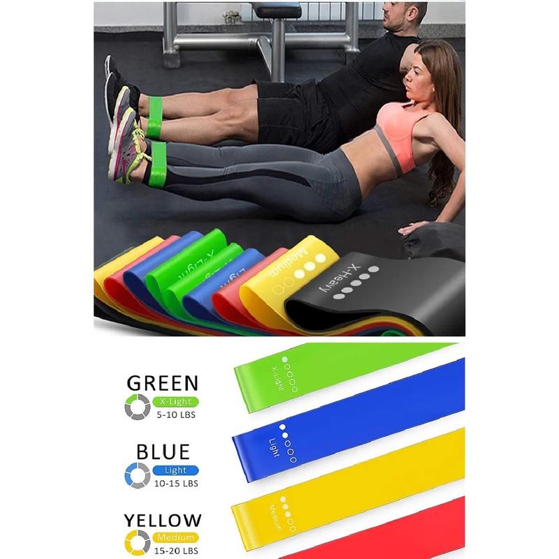 Bộ 3 Dây Kháng Lực Tập Mông MINI BANDS - Gồm 3 dây với 3 mức trọng lượng khác nhau. - Màu sắc: Vàng, Đỏ, Đen tương ứng với mỗi trọng lượng từ nhẹ đến